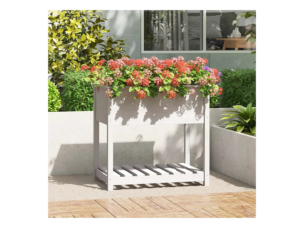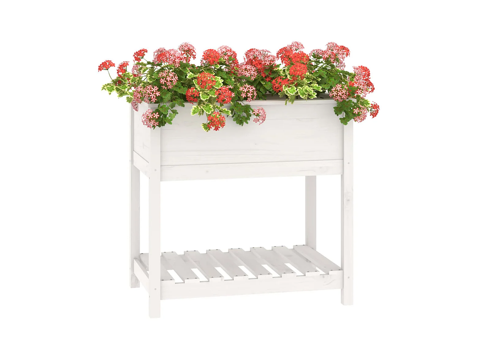 Jardinera con estante madera maciza de pino blanco 82,5x54x81cm