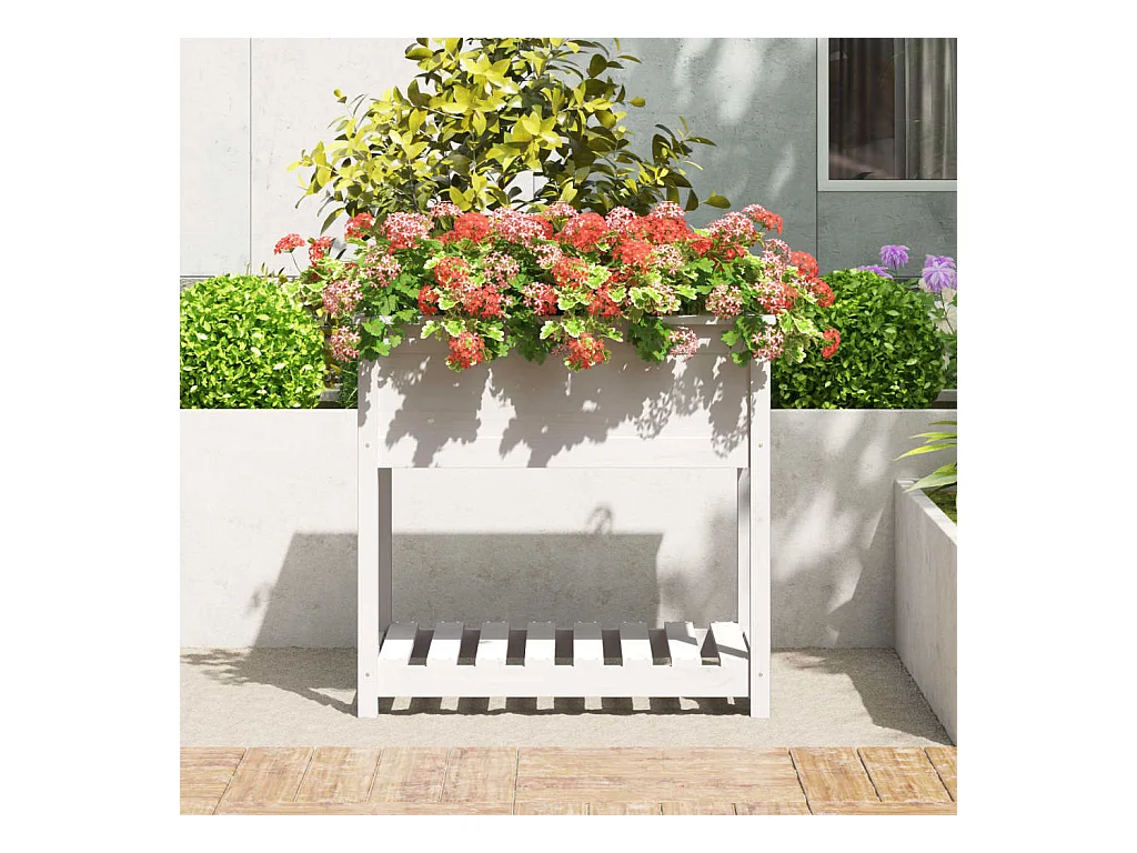 Jardinera con estante madera maciza de pino blanco 54x54x81 cm ES38073