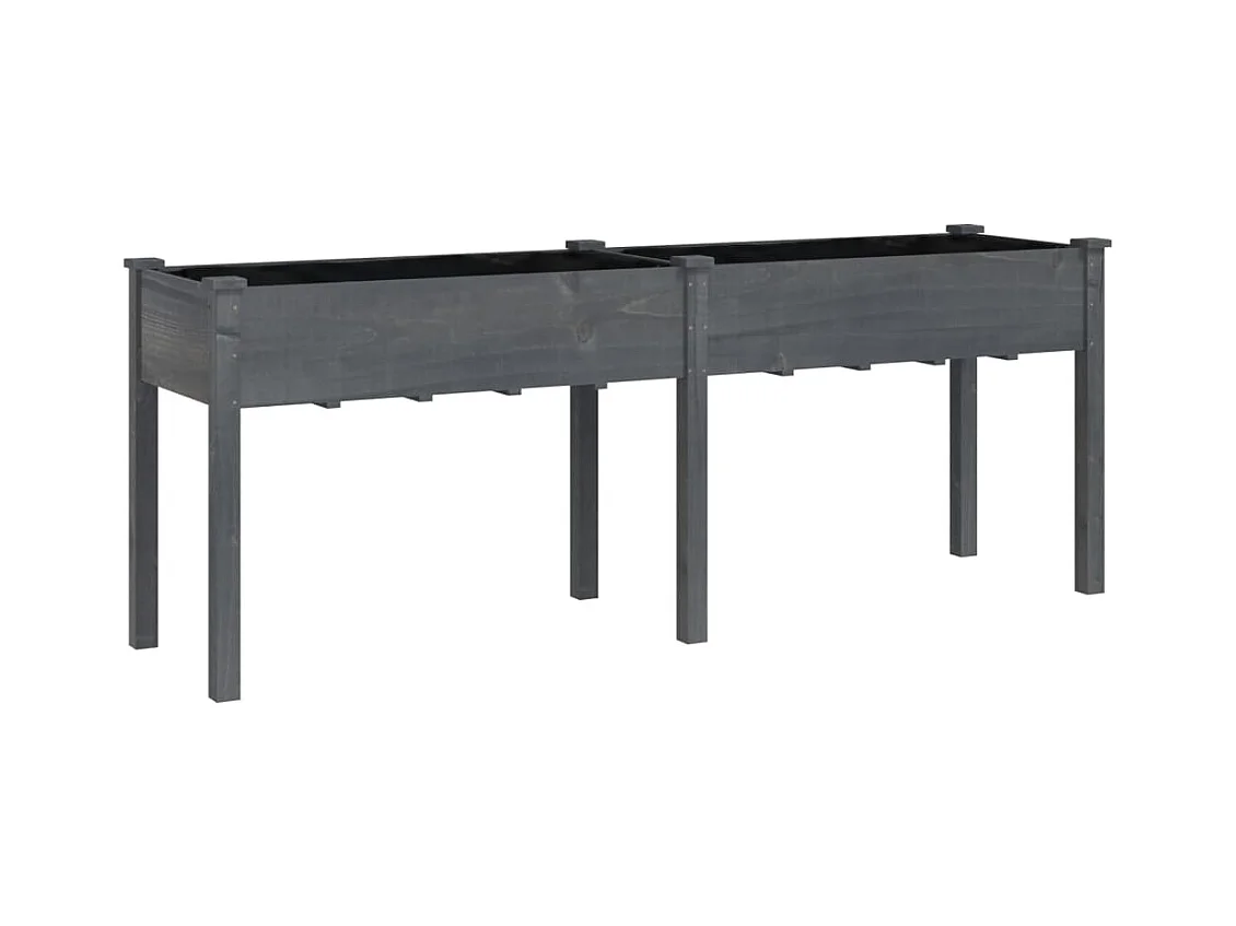 Jardinera de madera maciza de pino gris 245,5x44x75 cm ES95705