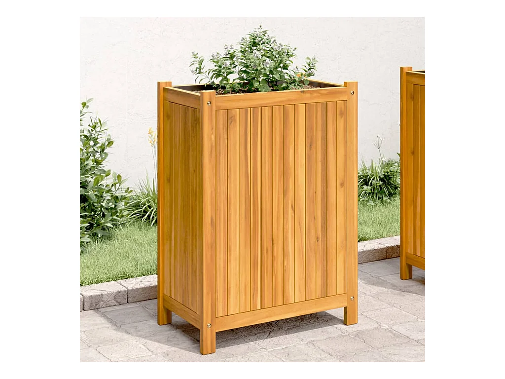 Jardinera con forro madera maciza de acacia 31x31x50 cm