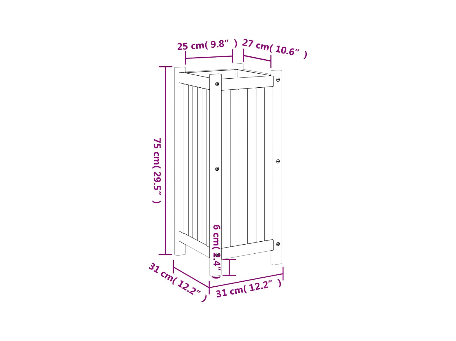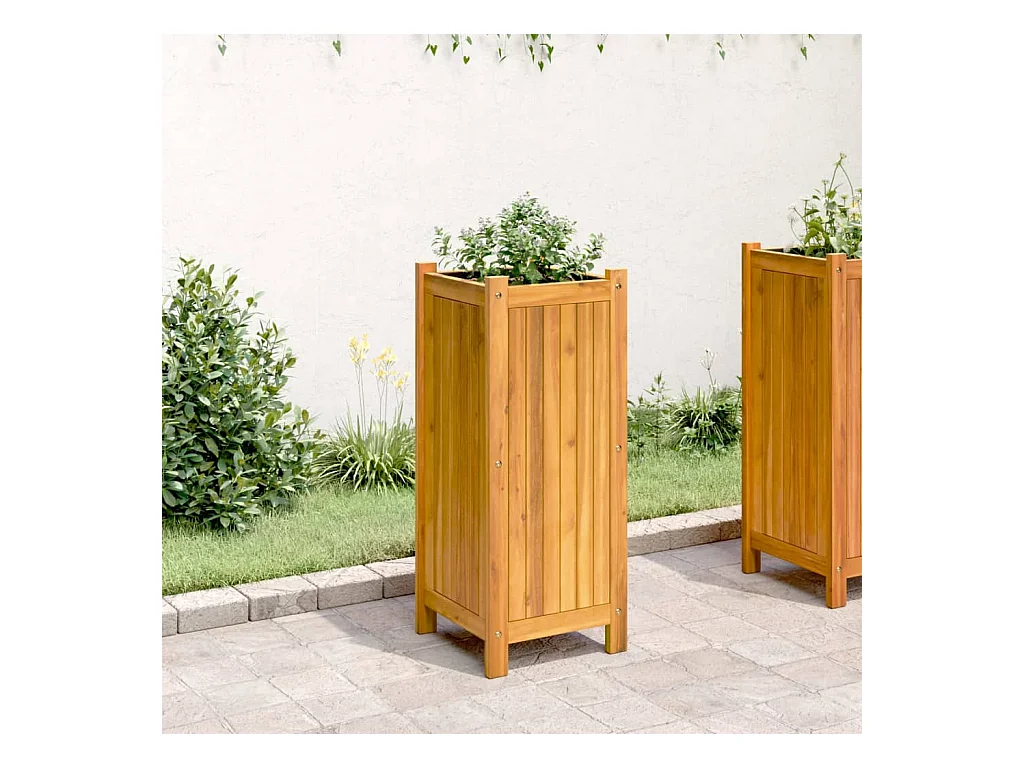 Jardinera con forro madera maciza de acacia 31x31x75 cm