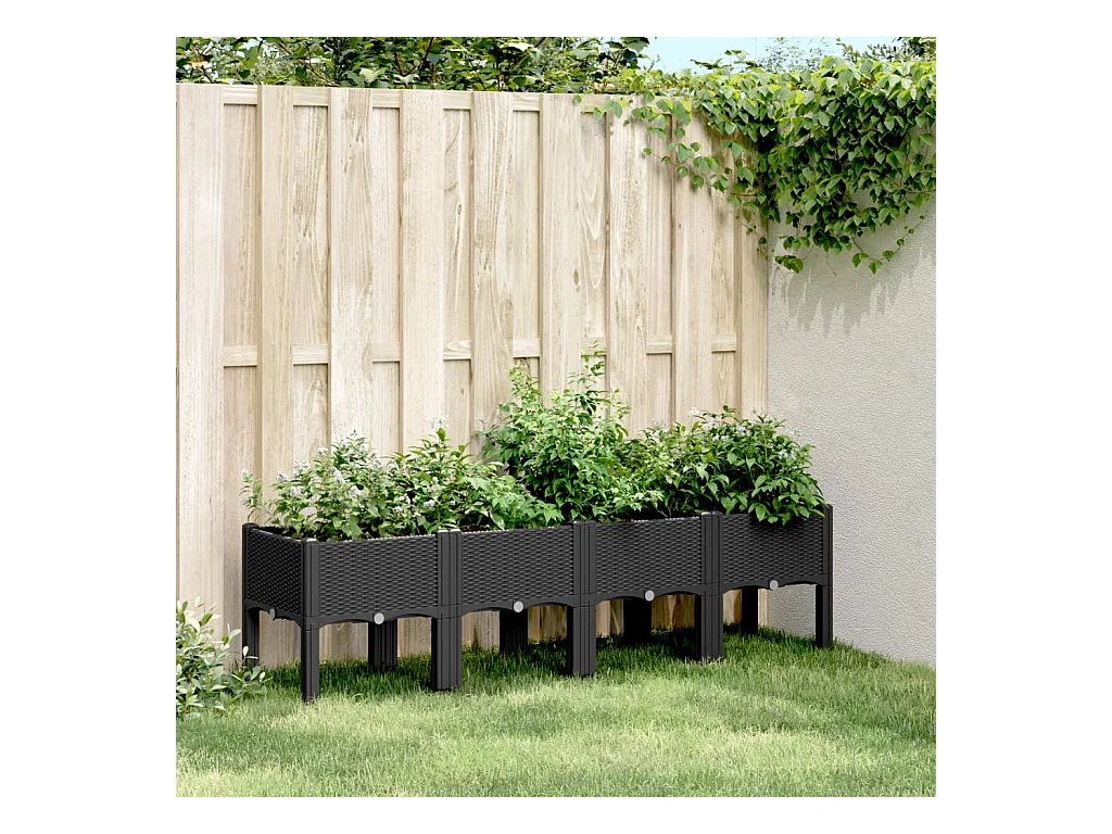 Jardinera con patas PP negro 160x120x42 cm ES464948