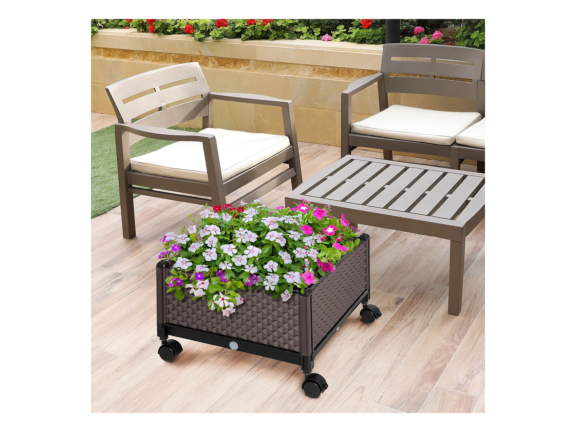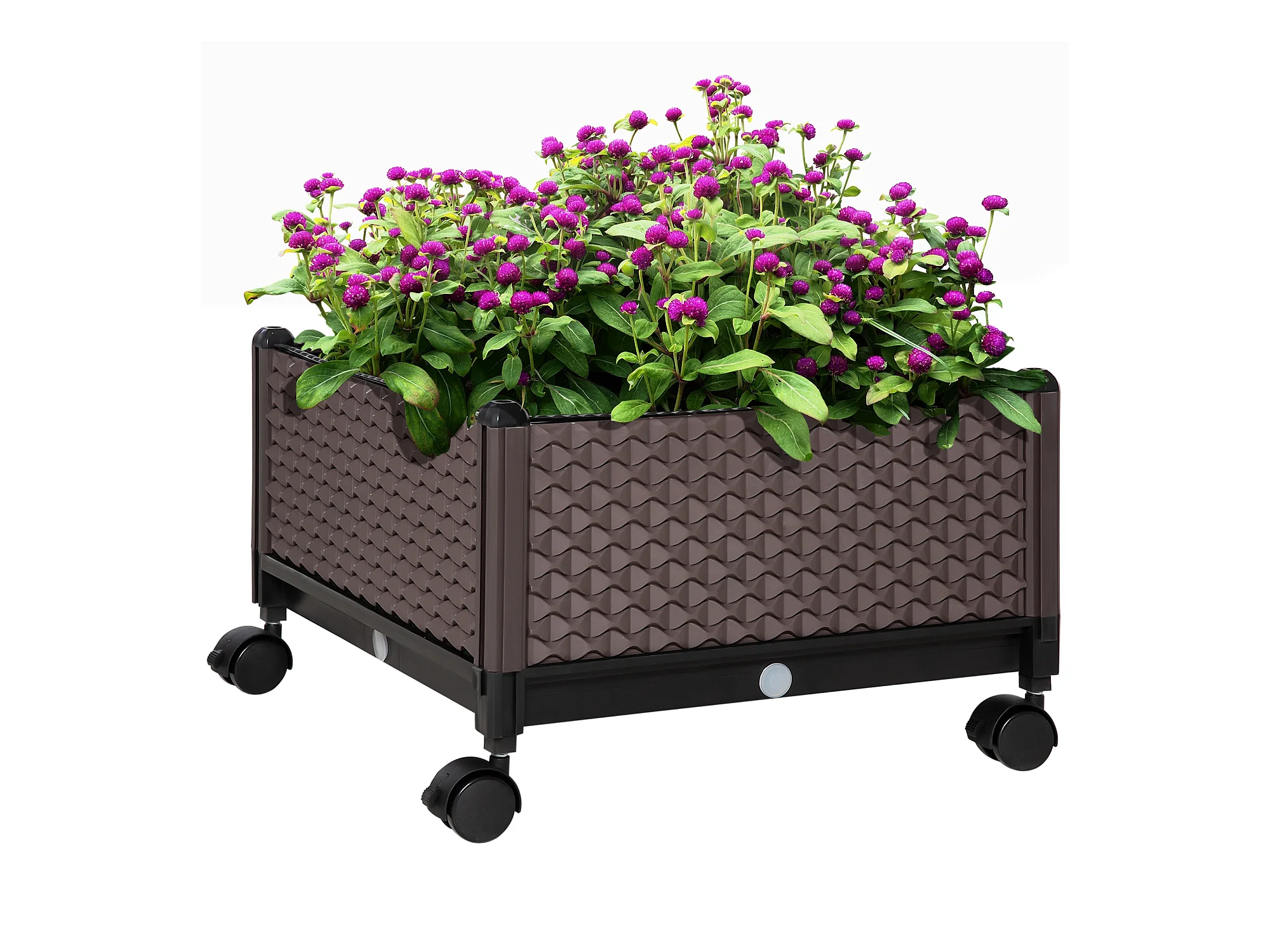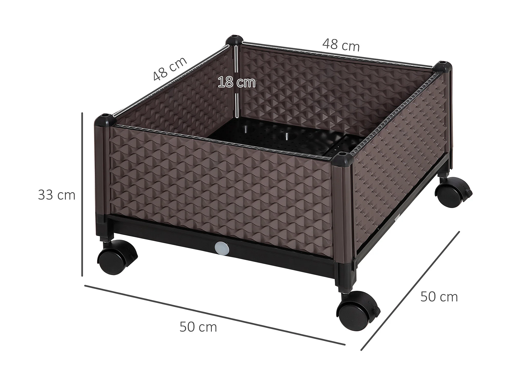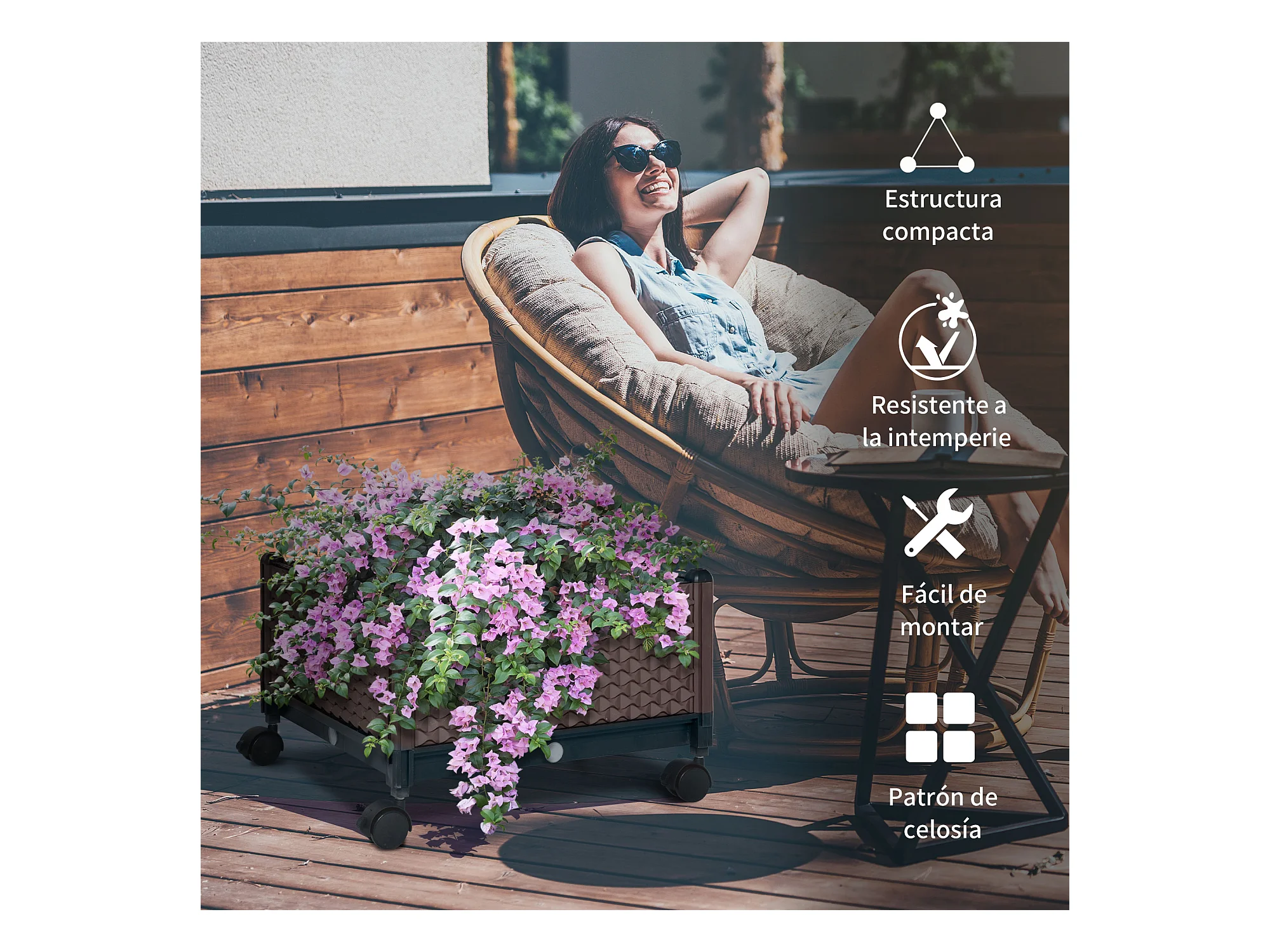 Jardinera con ruedas marrón 50x50x33 cm Outsunny