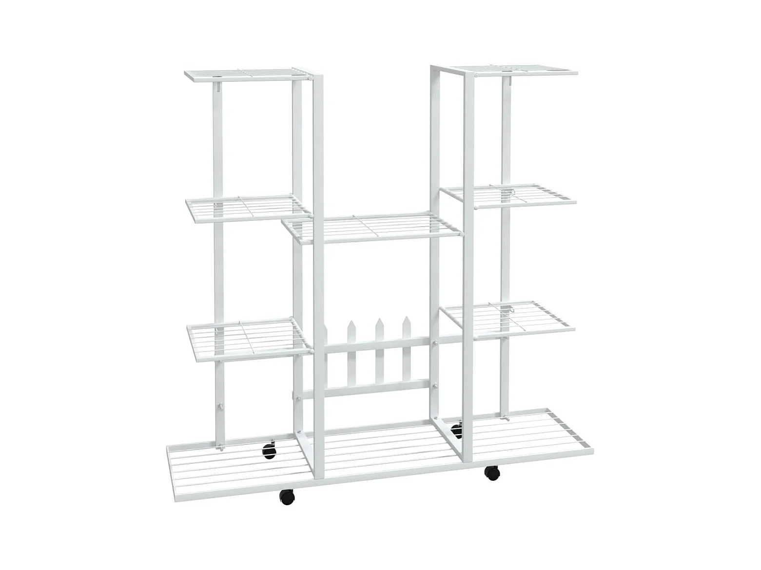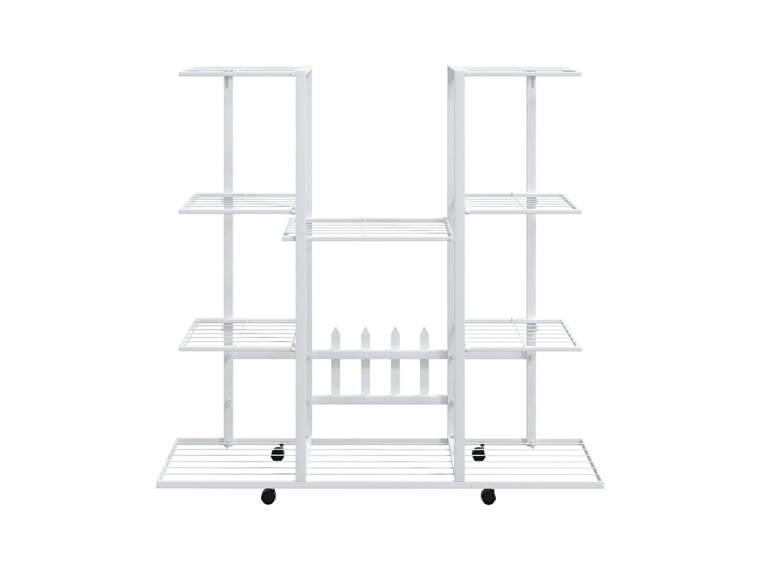 Jardinera de 4 niveles con ruedas 44x23x80 cm Hierro Blanco