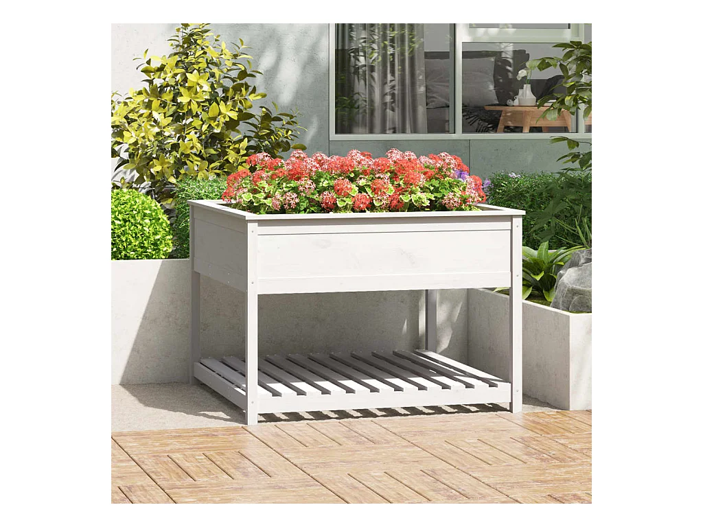 Jardinera con estante madera maciza pino blanca 82,5x82,5x81 cm ES73327