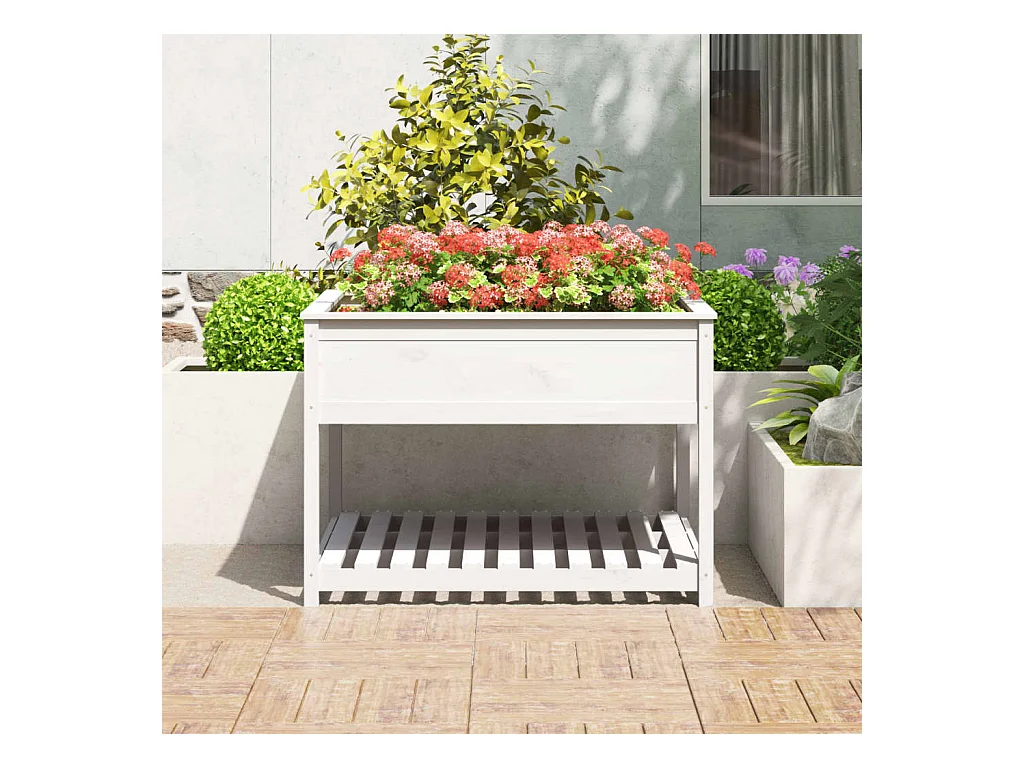 Jardinera con estante madera maciza pino blanca 111,5x54x81 cm ES35162
