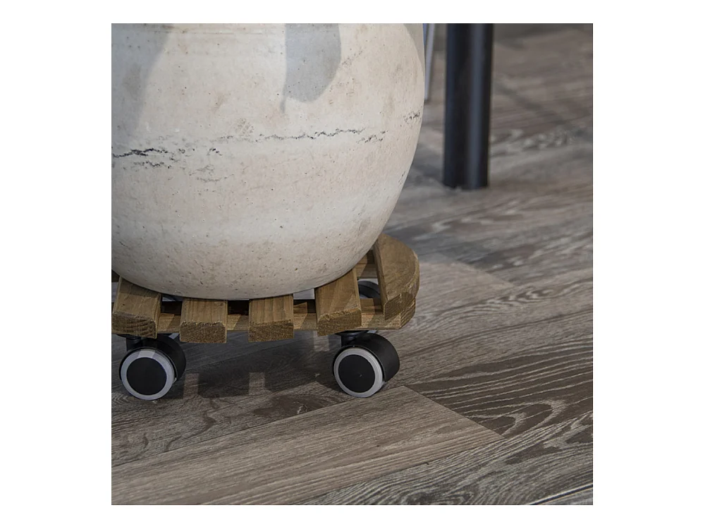Jardinera de madera con ruedas Redonda - Teñida de marrón