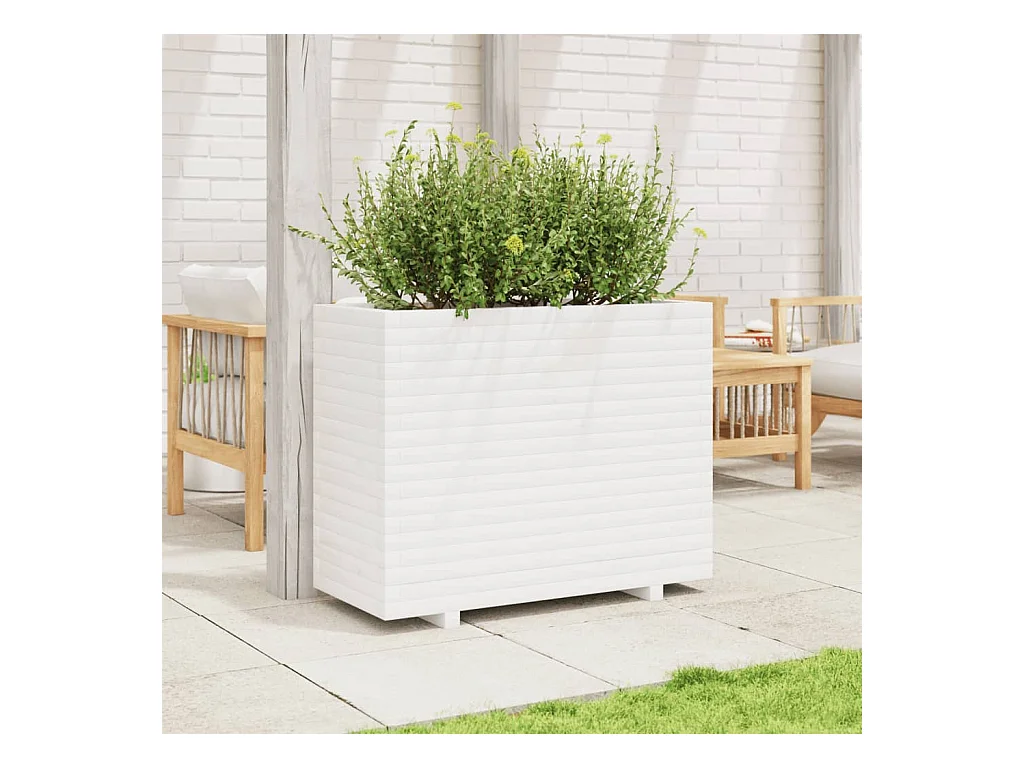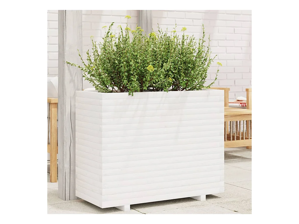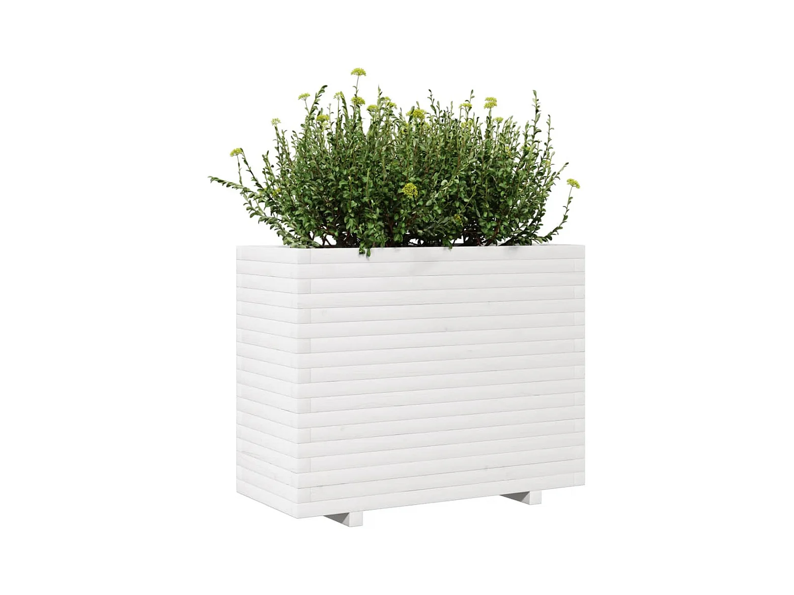 Jardinera de madera maciza de pino blanca 90x60x72 cm