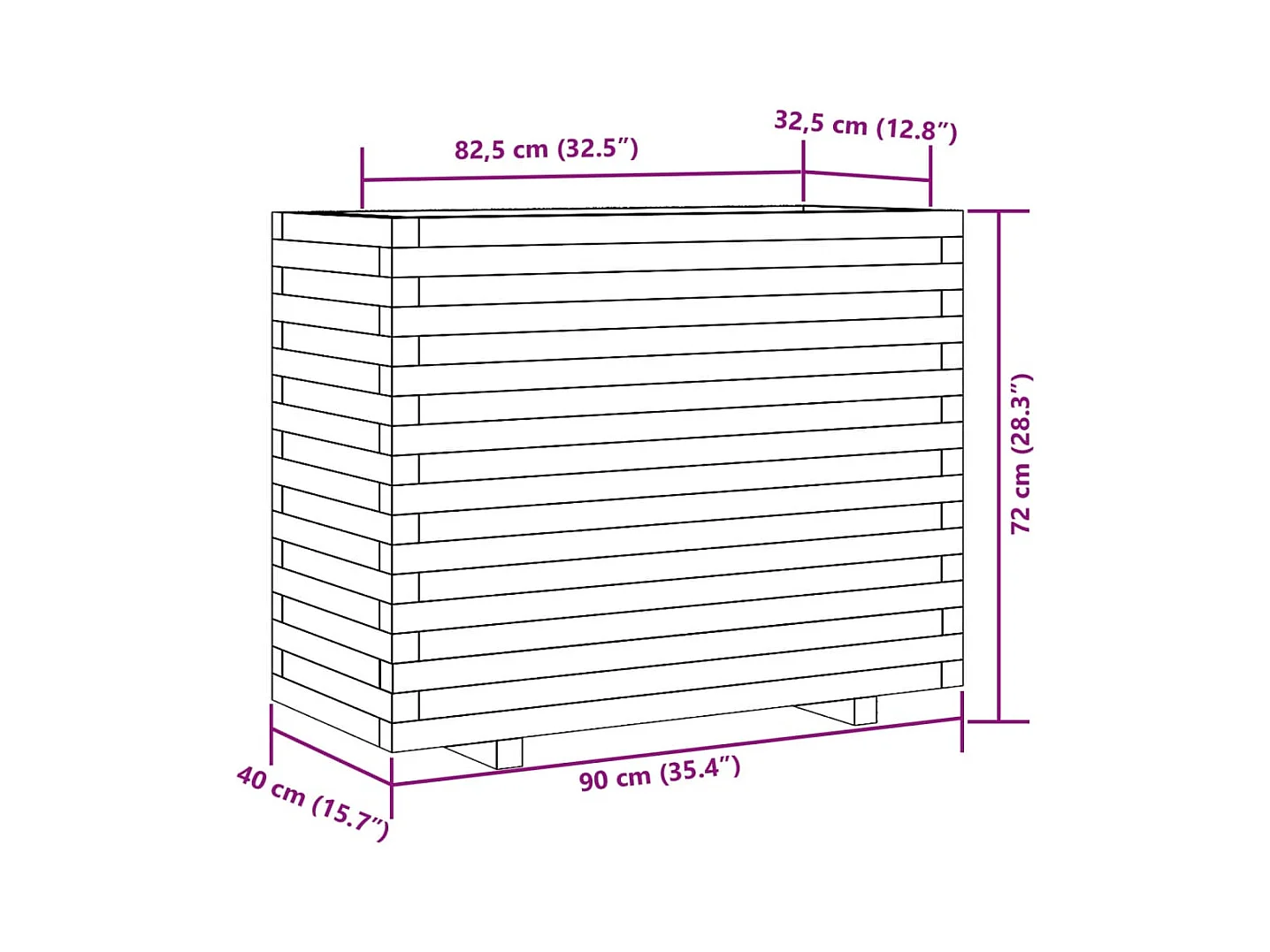 Jardinera de madera maciza de pino blanco 90x40x23 cm ES941934