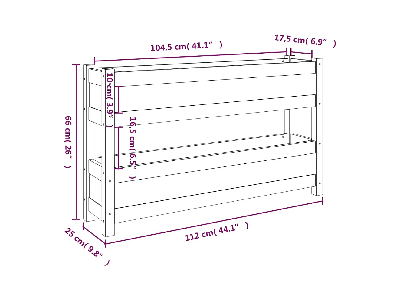 Jardinera de madera maciza de pino blanco 112x25x66 cm