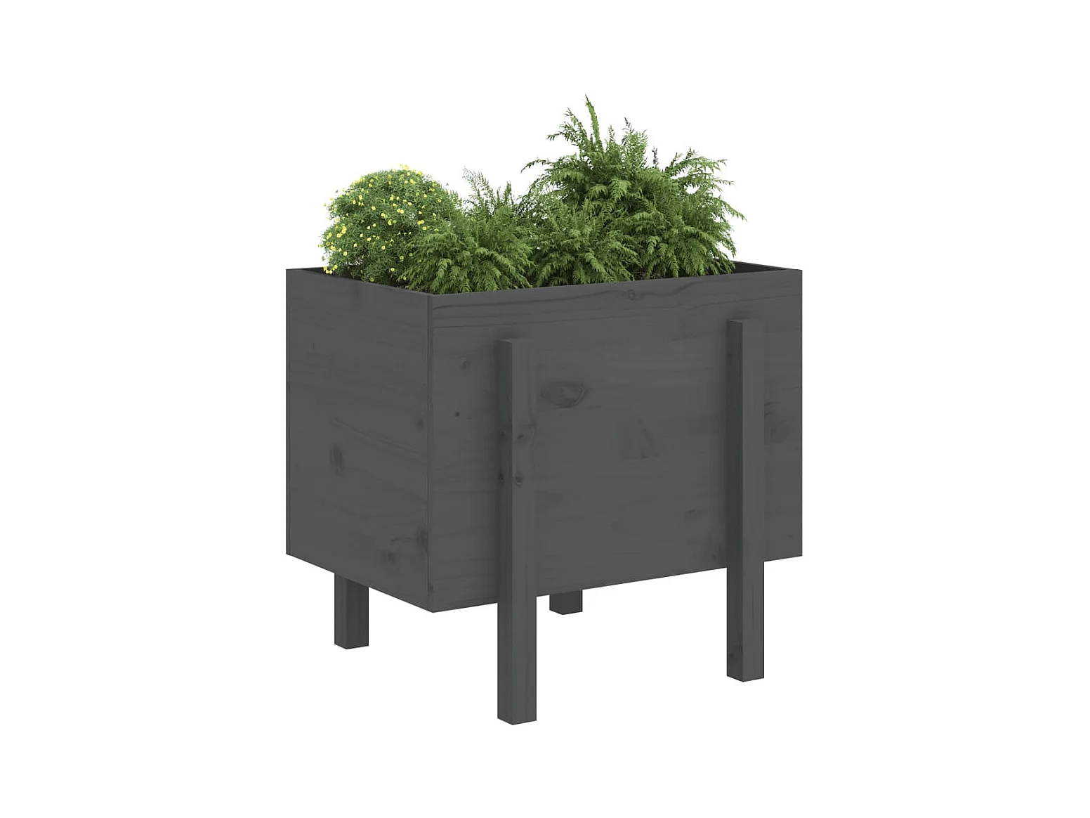 Jardinera de madera maciza de pino gris 62x50x57 cm