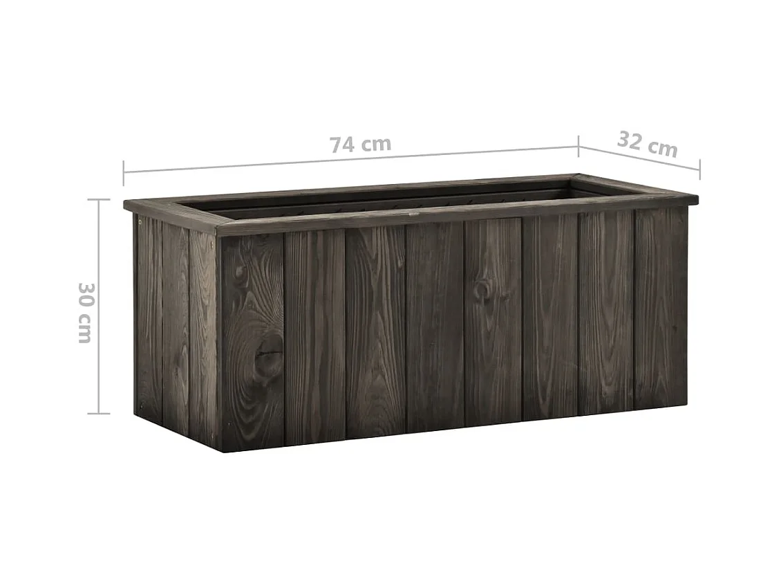 Arriate de madera maciza de pino gris oscuro 74x32x30 cm