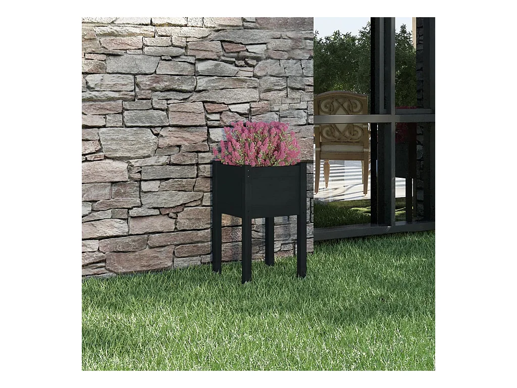 Jardinera de madera maciza de pino negro 40x40x70 cm ES49052