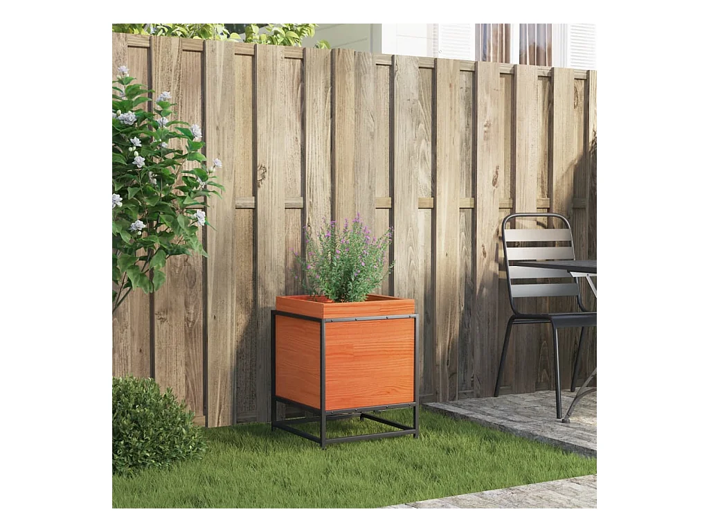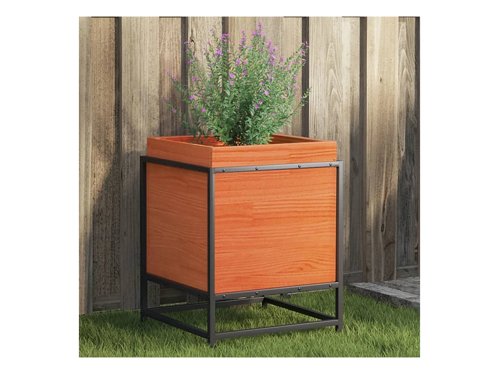 Jardinera de madera maciza pino marrón cera 40x40x50 cm ES314873