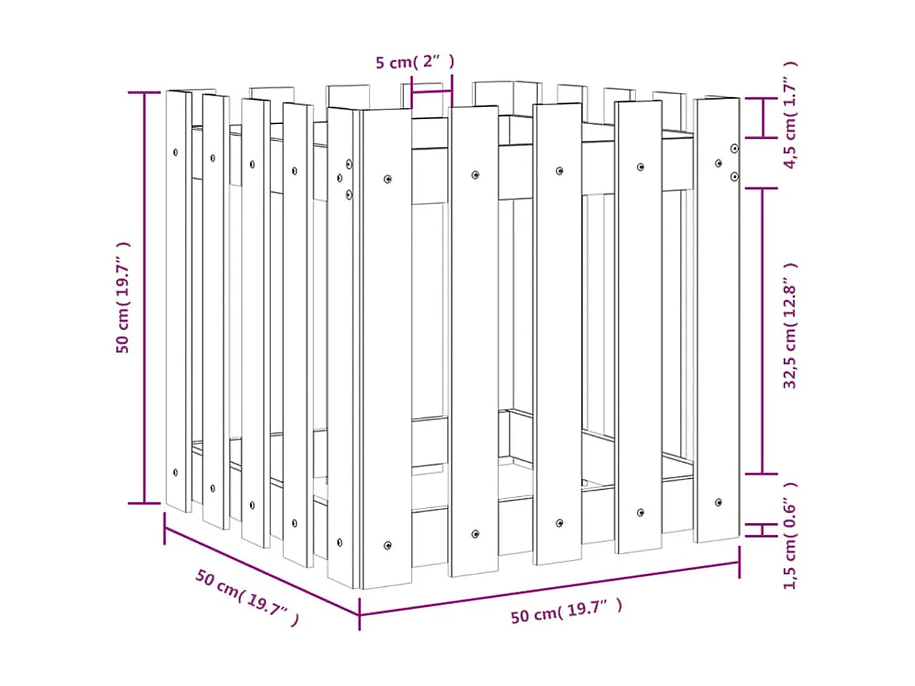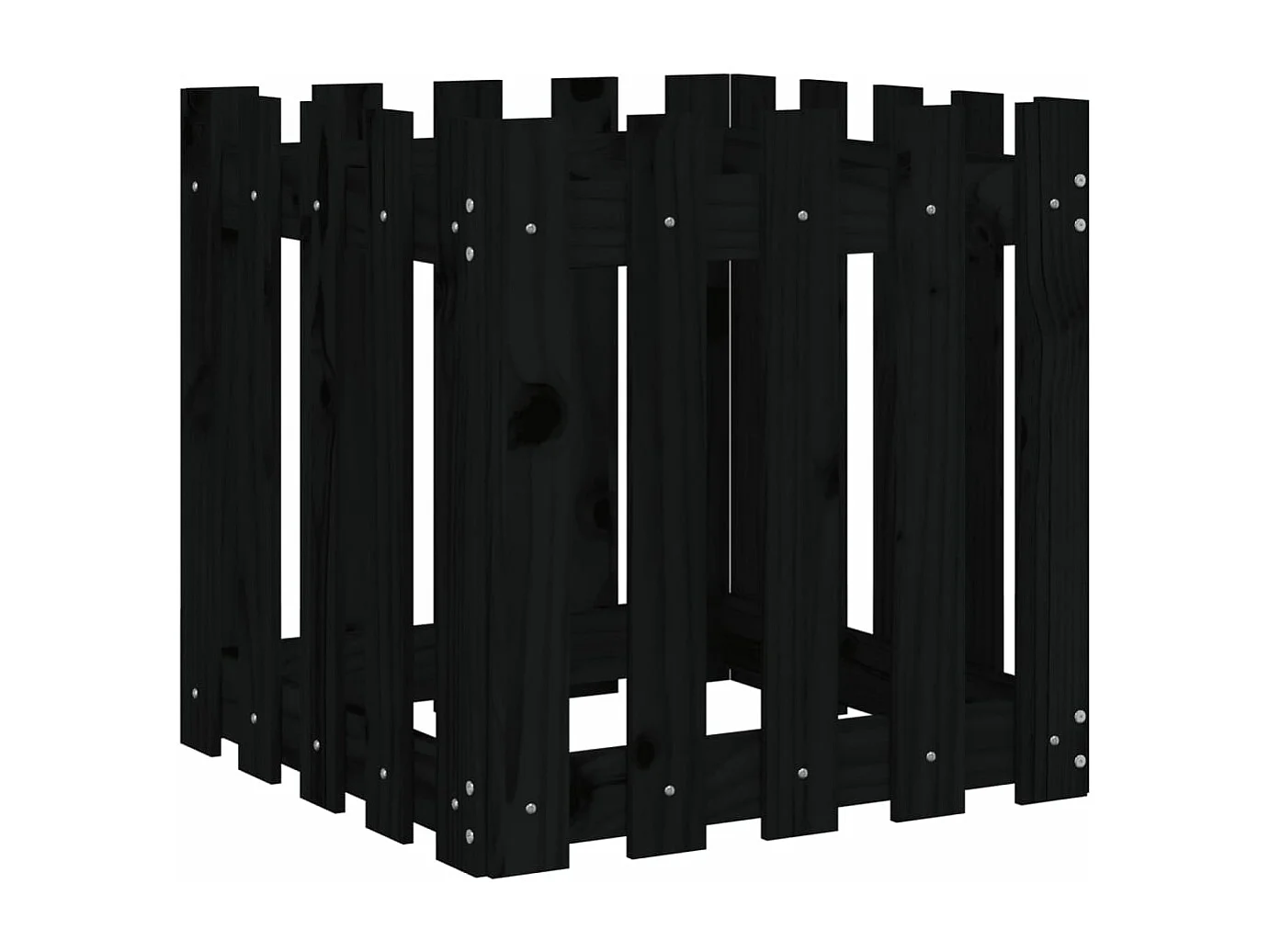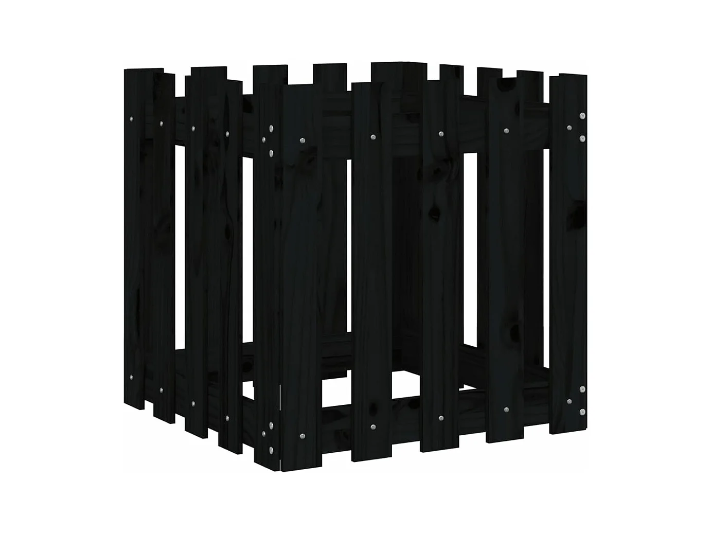 Jardinera diseño de valla madera maciza pino negra 50x50x50 cm