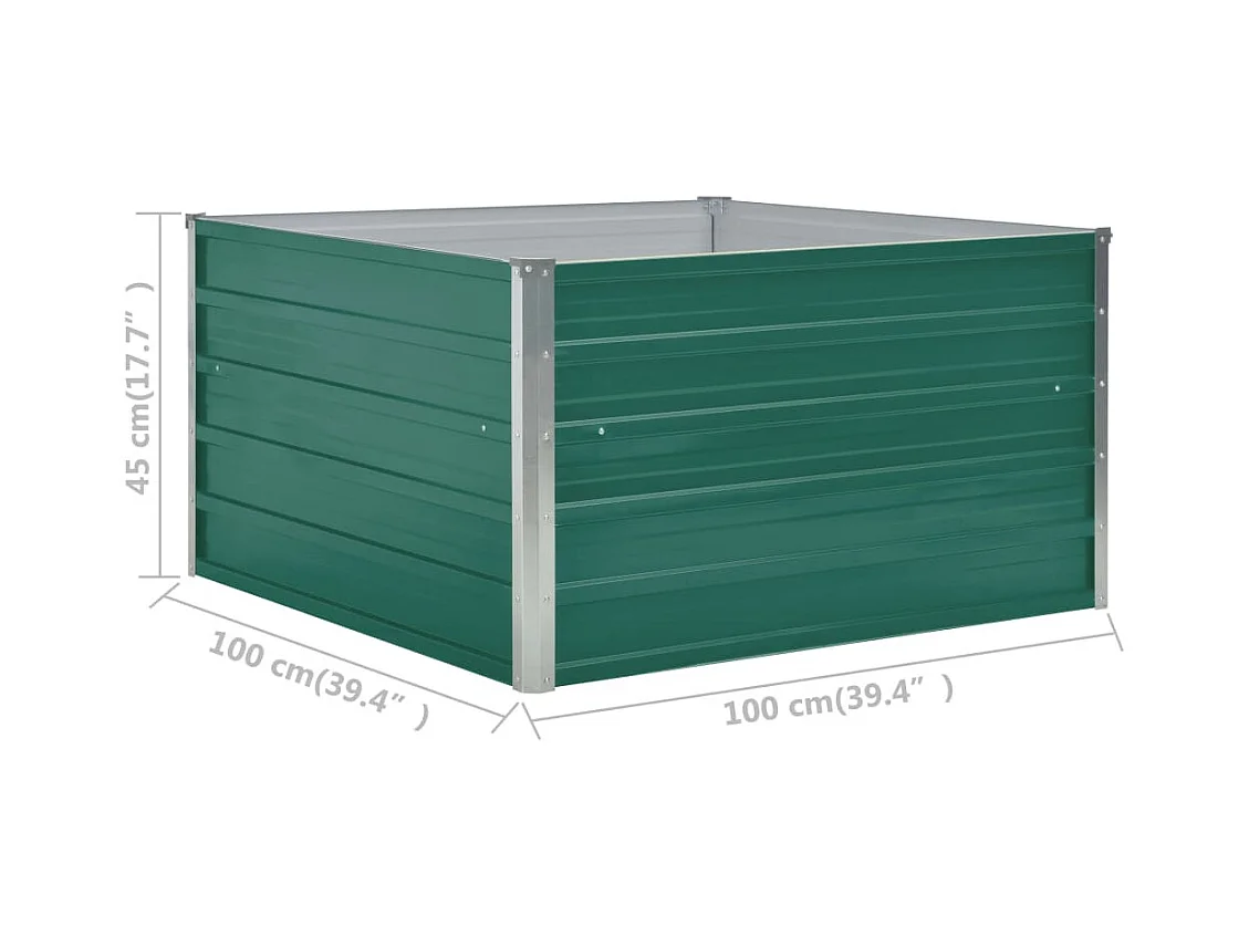 Jardinera elevada de acero galvanizado verde 100x100x45 cm