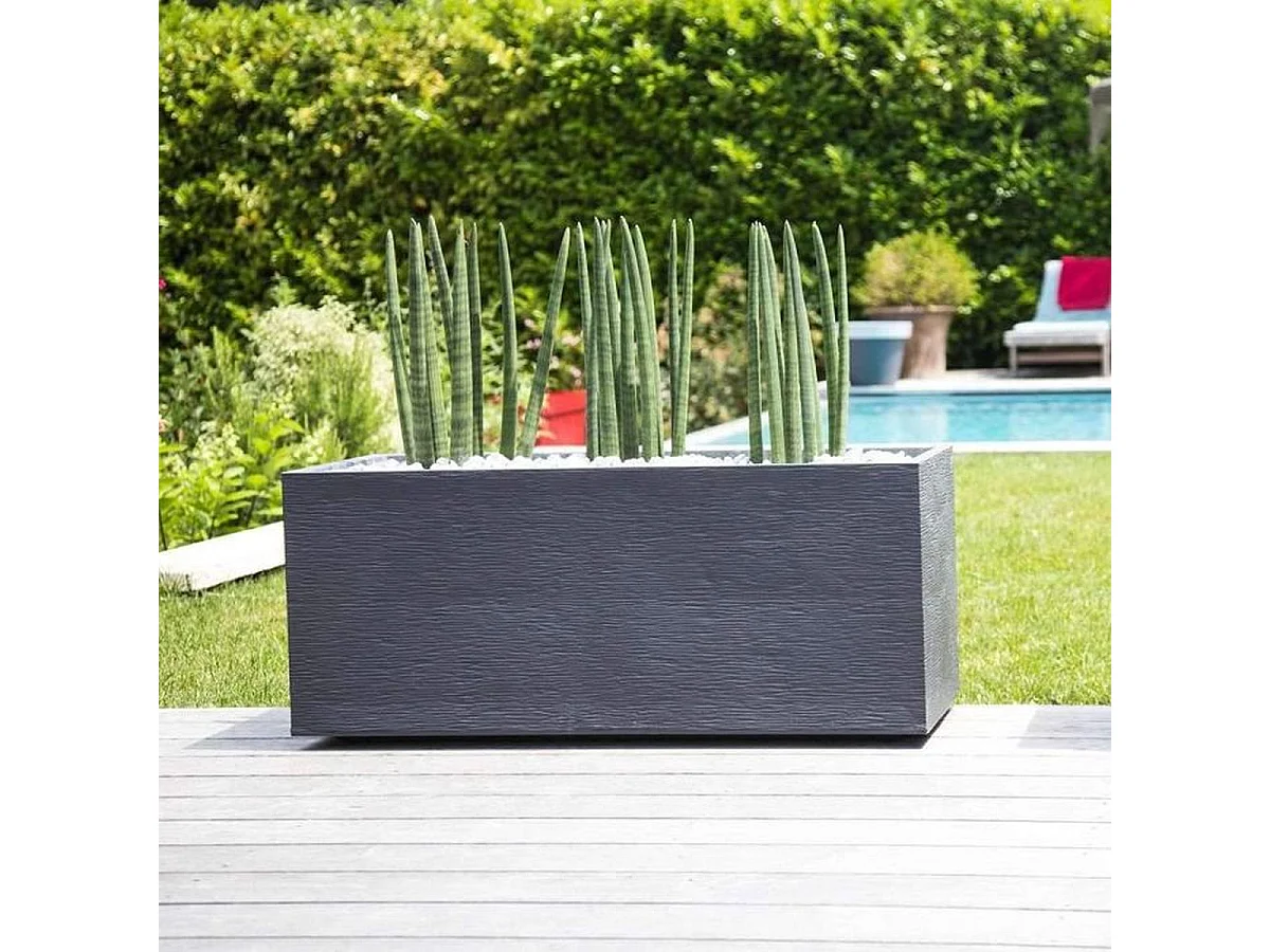 Jardinera rectangular Volcania Up efecto piedra antracita - 59 x 19,5 x 22,8 cm