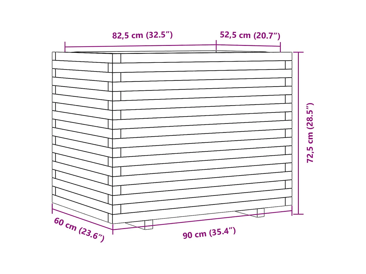 Jardinera de madera de pino impregnada 90x60x26,5 cm