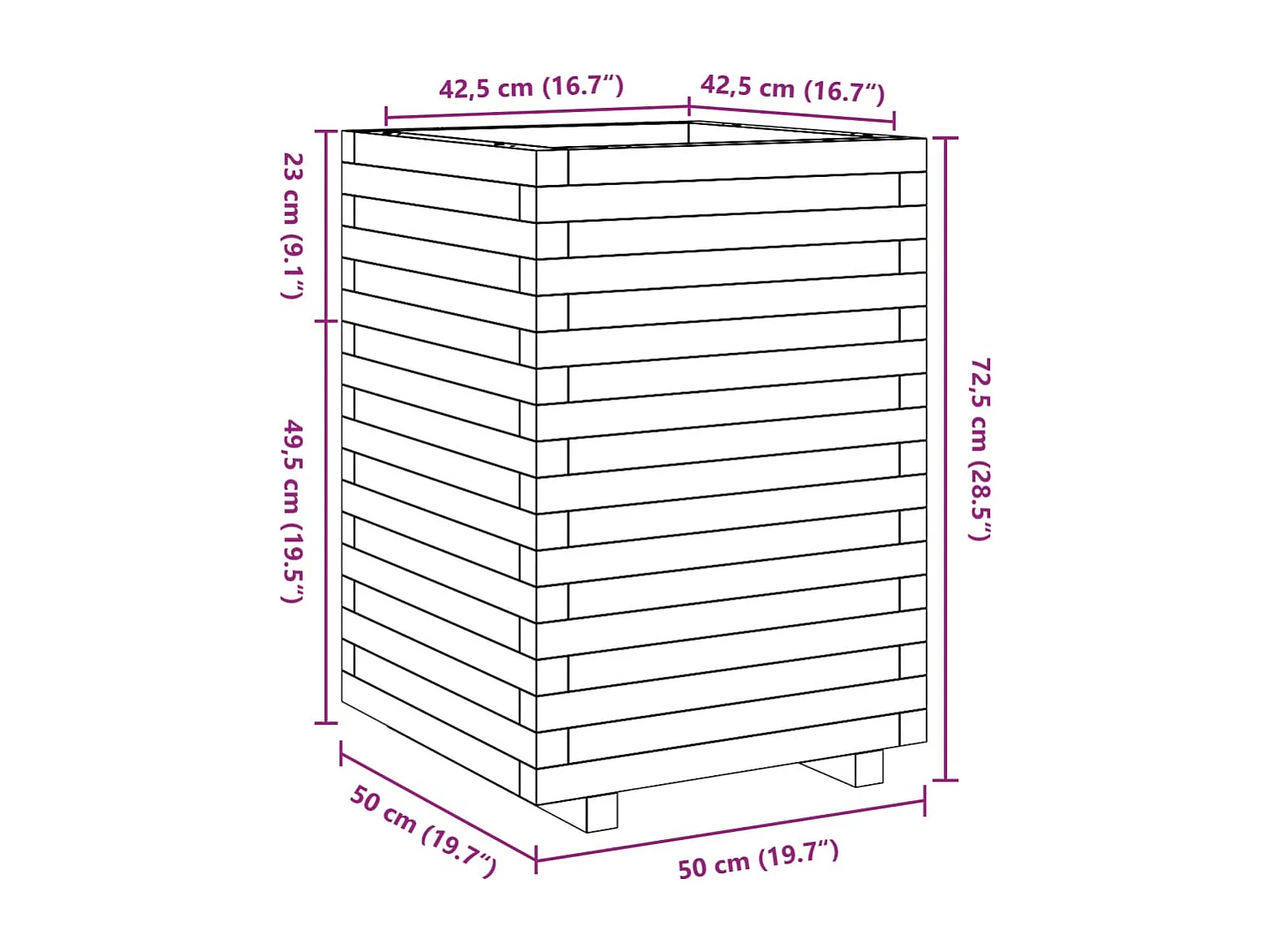 Jardinera madera maciza de abeto Douglas 50x50x72,5 cm