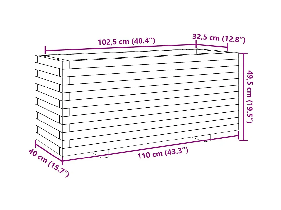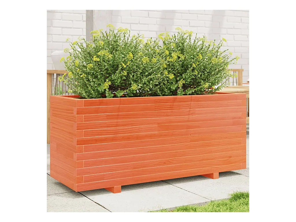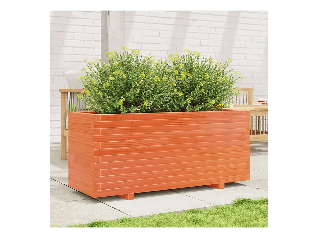 Jardinera madera maciza de pino marrón cera 110x60x23 cm