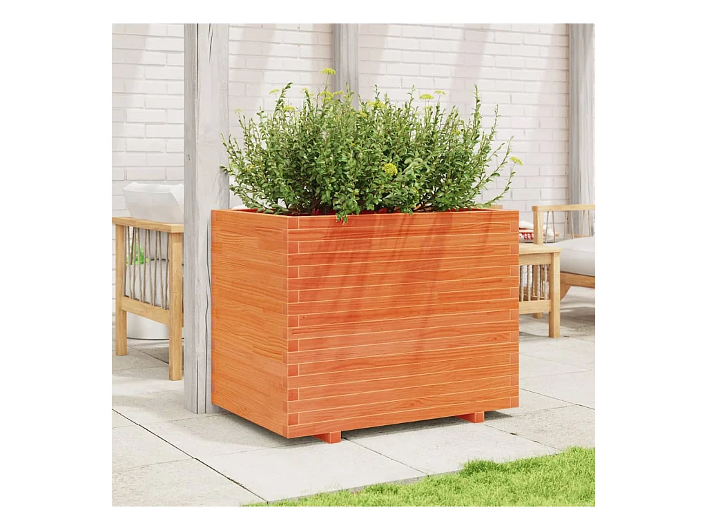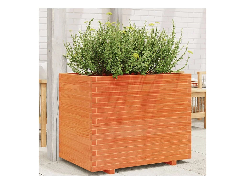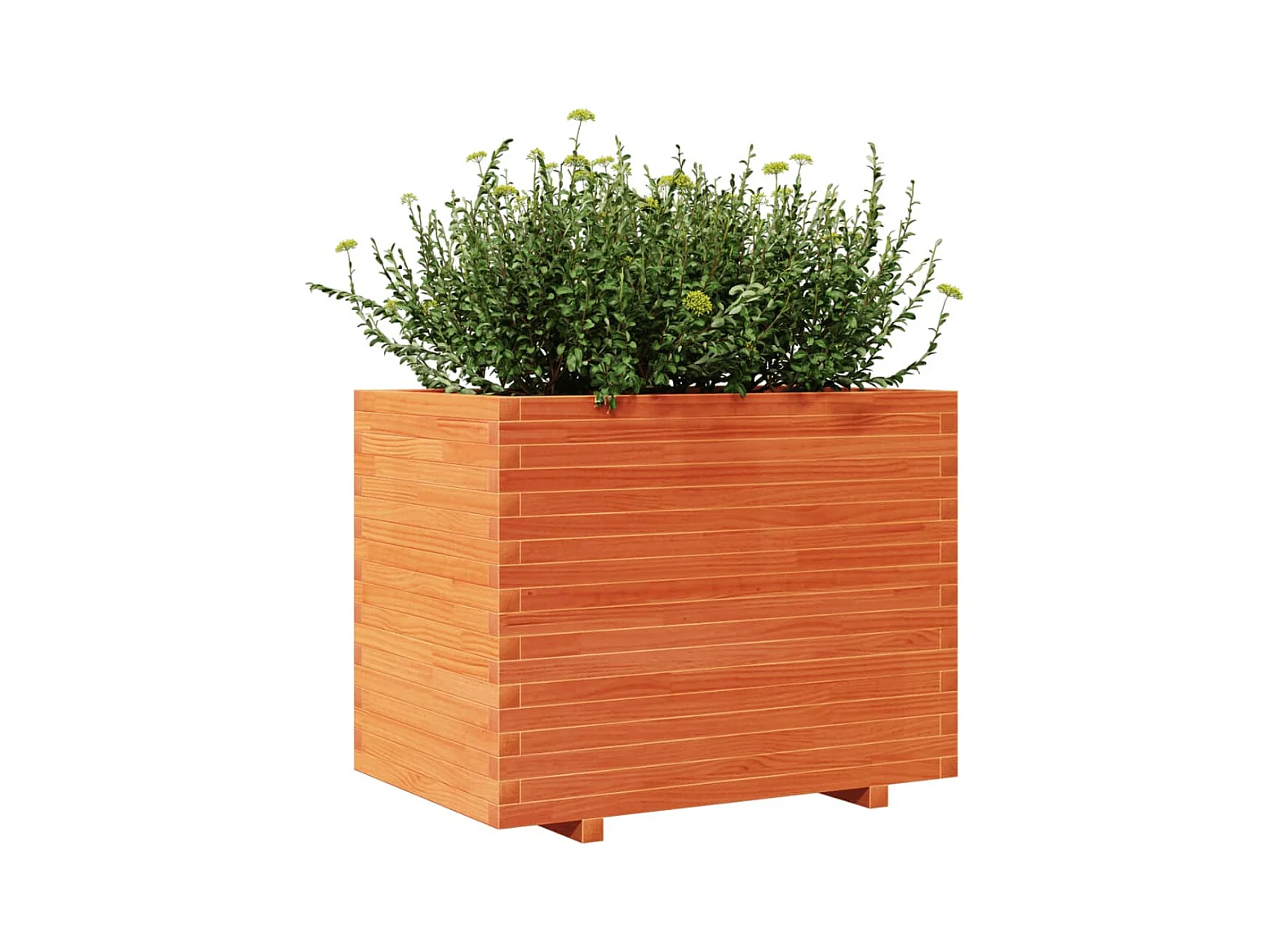 Jardinera de madera maciza de pino marrón cera 90x60x26,5 cm ES137810