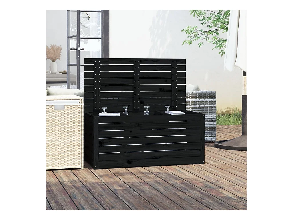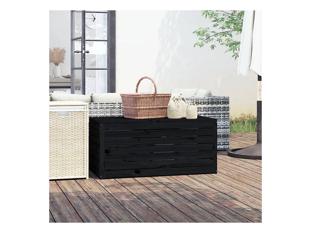 Jardinera negra de madera de pino maciza 101x50,5x46,5 cm