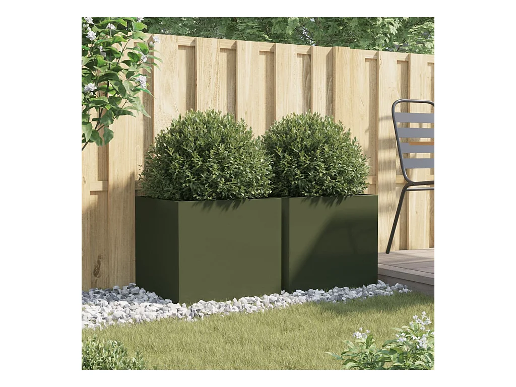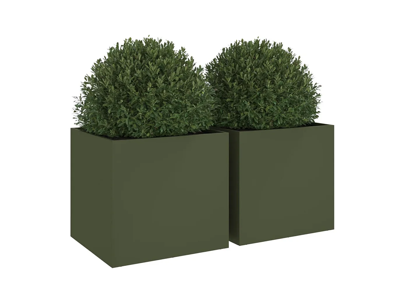 Jardineras 2 unidades acero laminado en frío verde oliva 49x47x46 cm