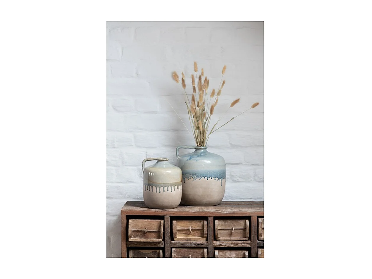 Jarrón con asa de cerámica beige 20x20x30 cm