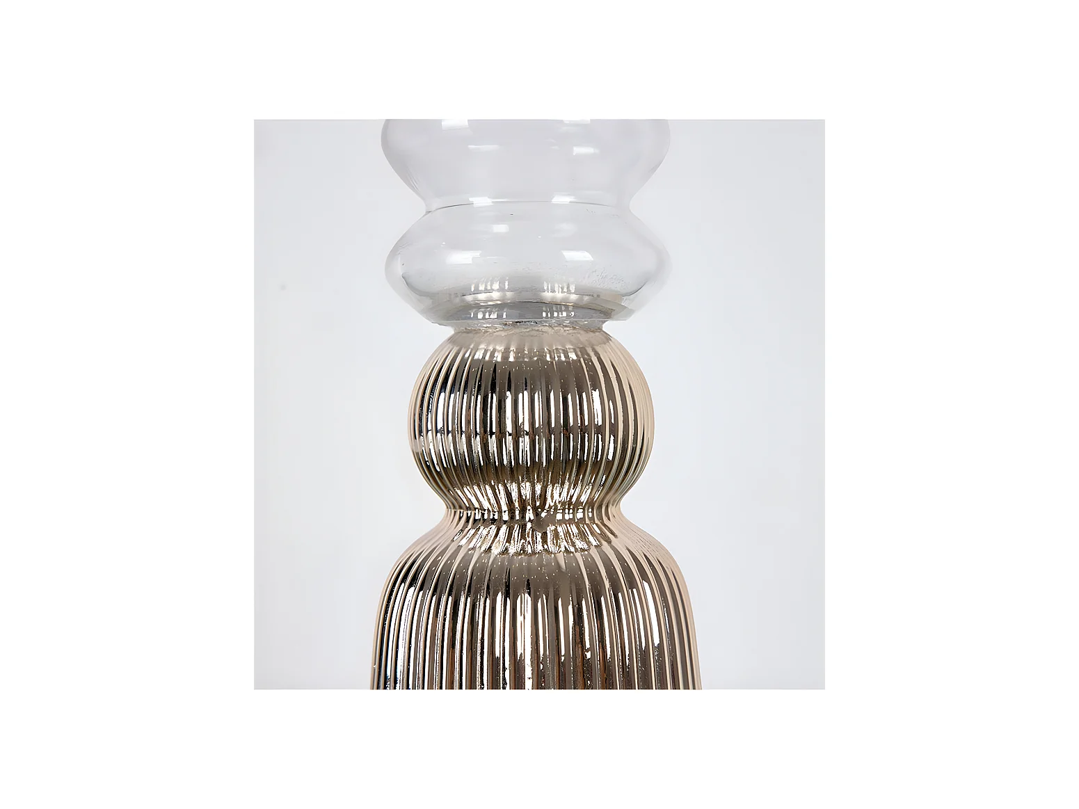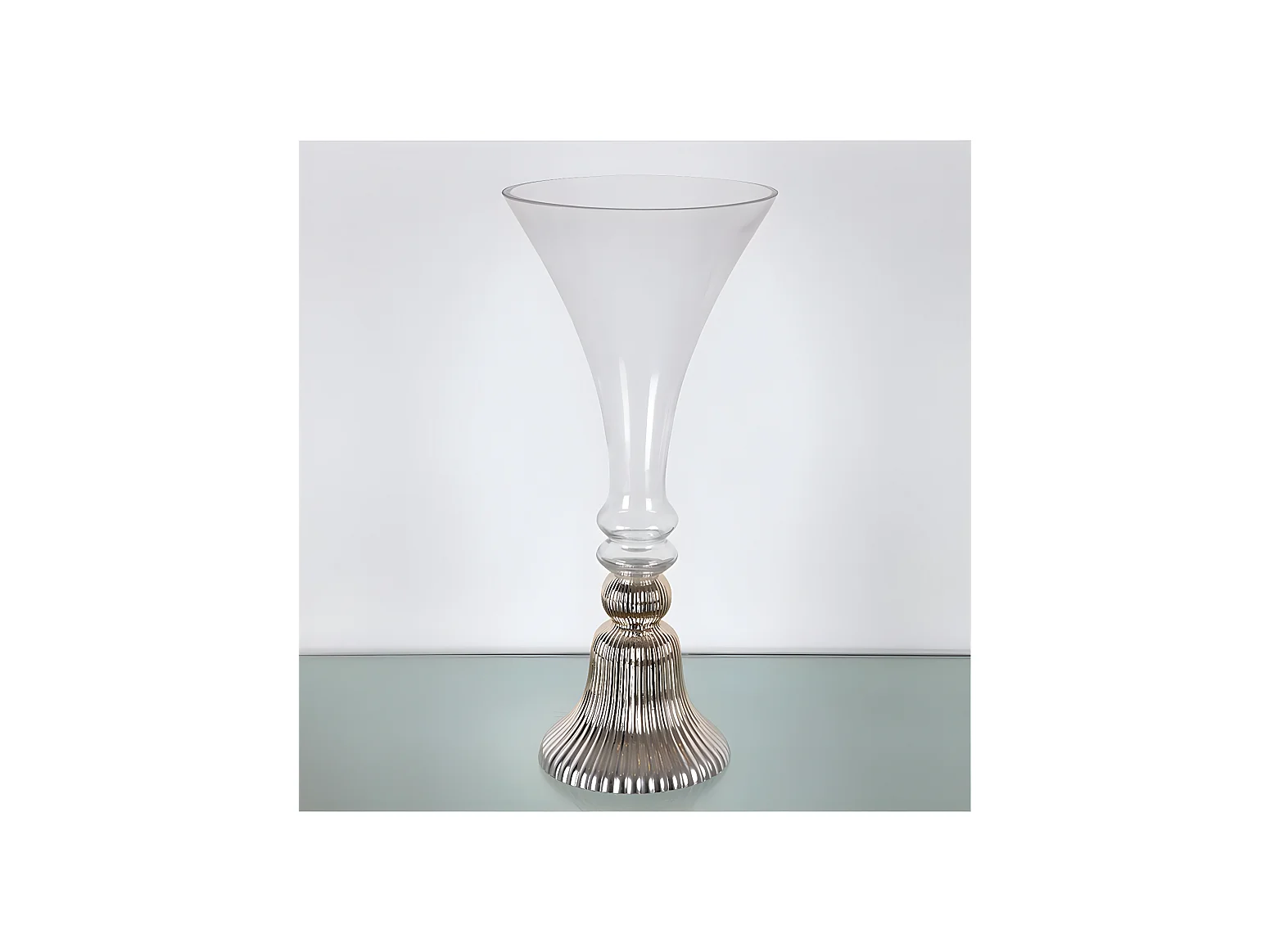 Jarrón alto de 53cm de cristal con pie talla en líneas dorado ronda