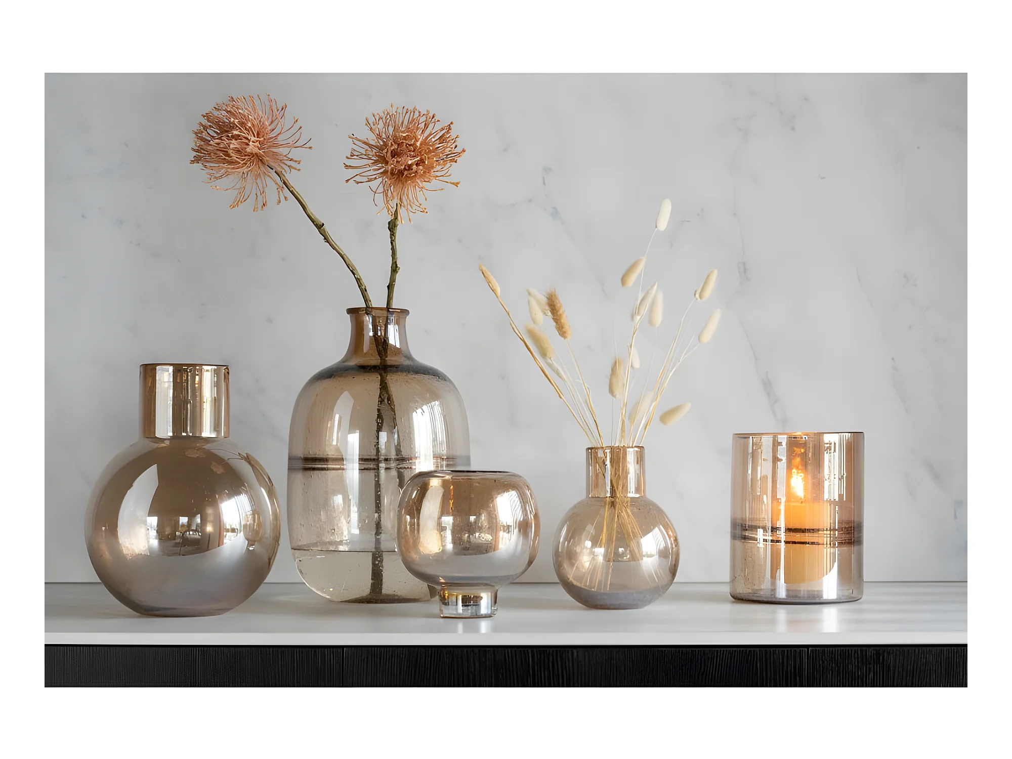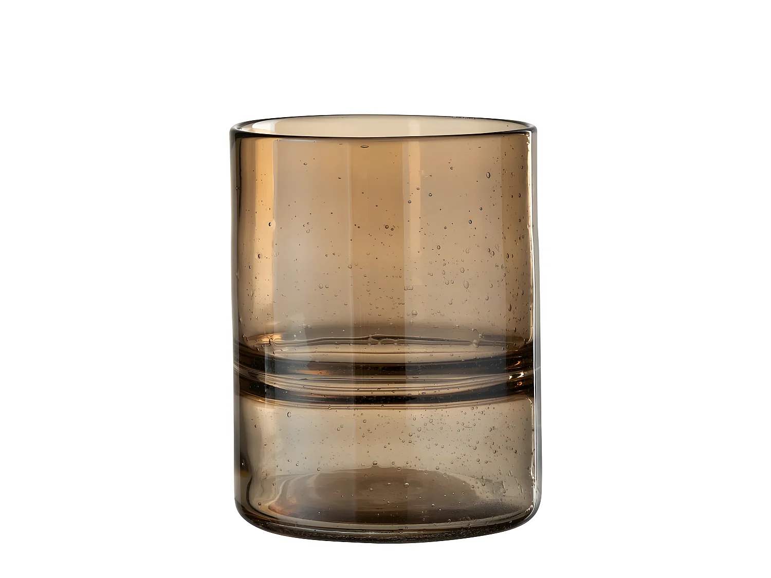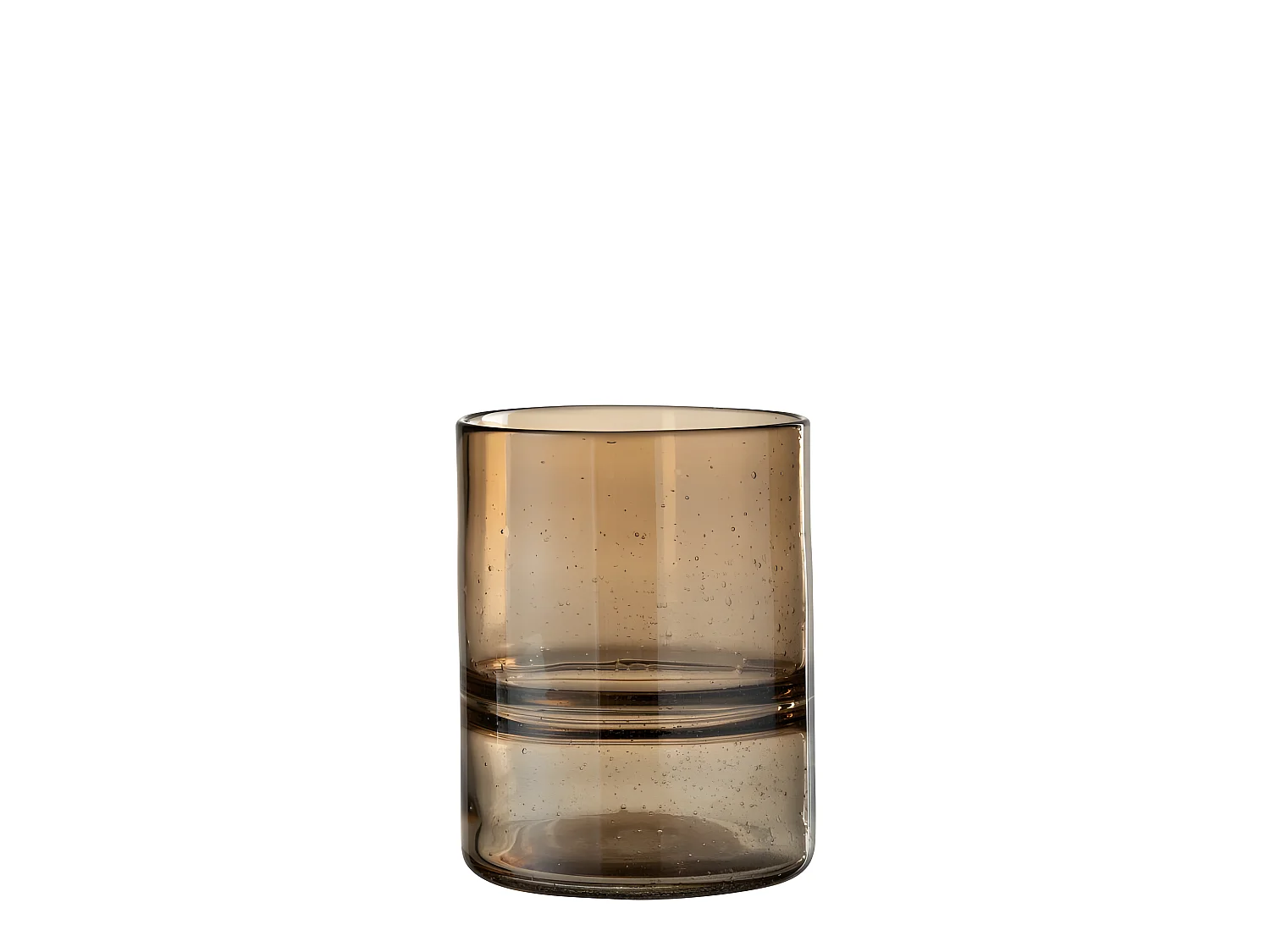 Jarrón cilíndrico con anillos de vidrio marrón 16x16x20 cm