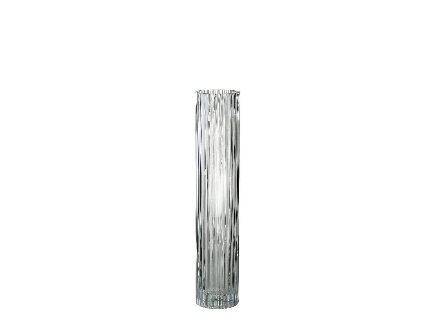 Jarrón cilíndrico con líneas de vidrio transparente de 8x8x40 cm