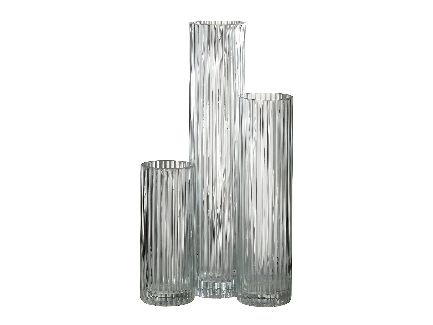 Jarrón cilíndrico con líneas de vidrio transparente 8x8x30 cm