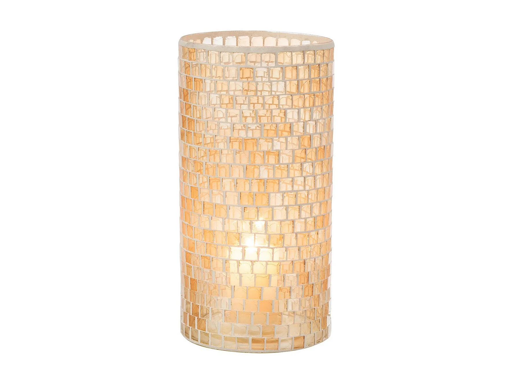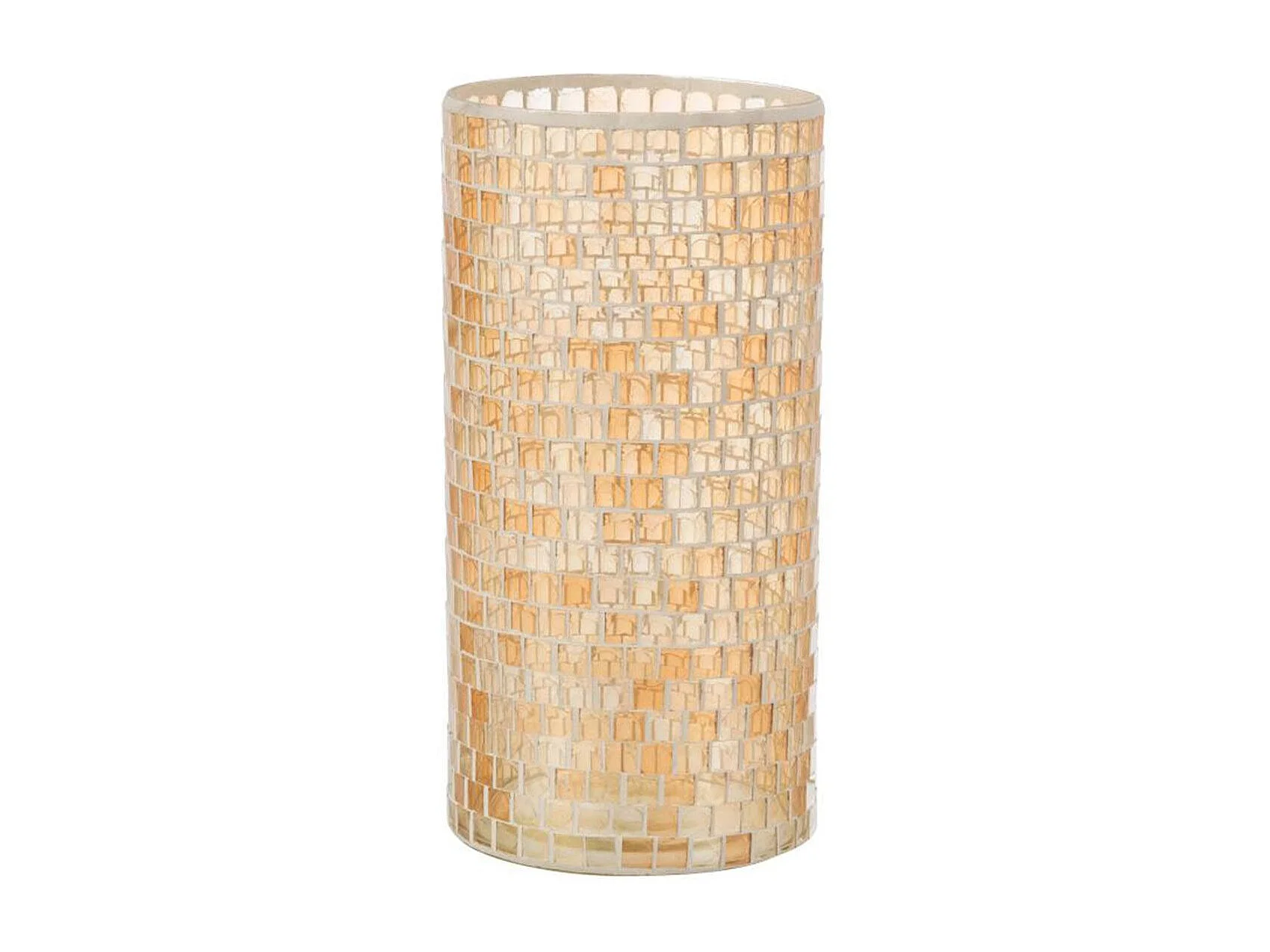 Jarrón cilíndrico de mosaico de vidrio naranja de 15x15x29 cm