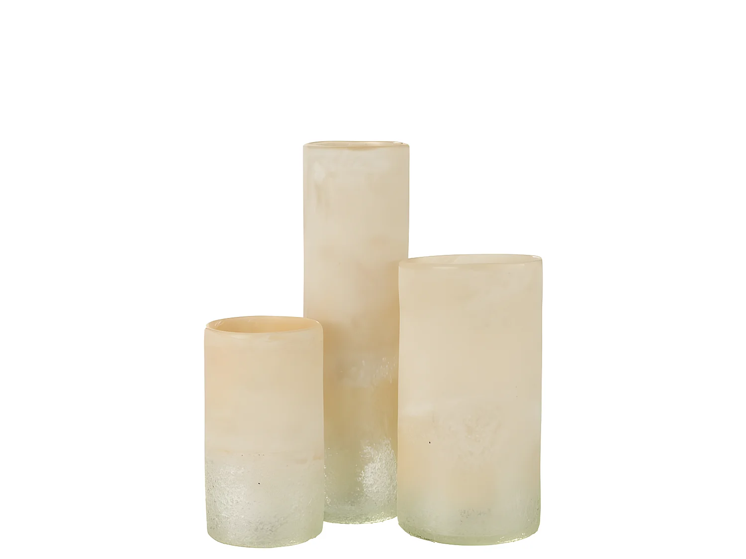 Jarrón cilíndrico de vidrio beige 15x15x30 cm