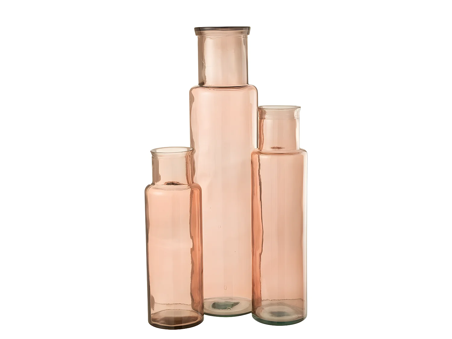 Jarrón cilíndrico de vidrio rosa 15x15x55 cm
