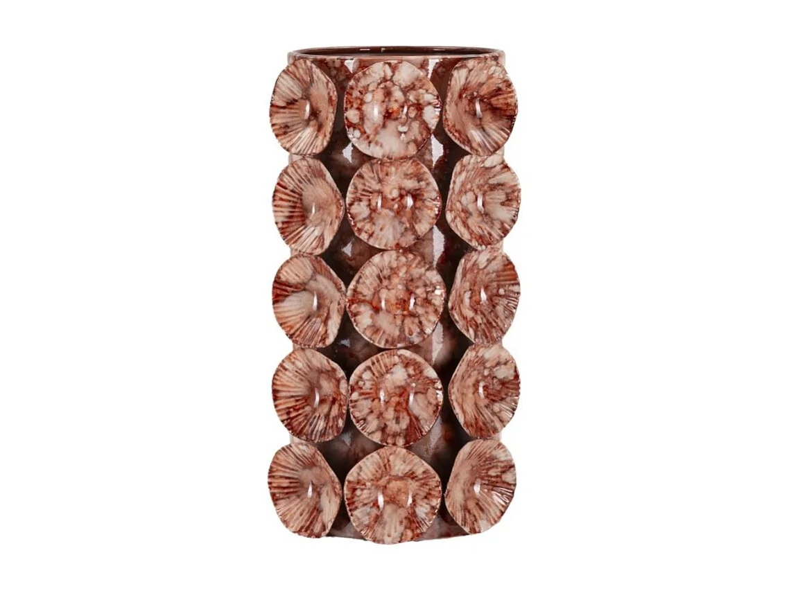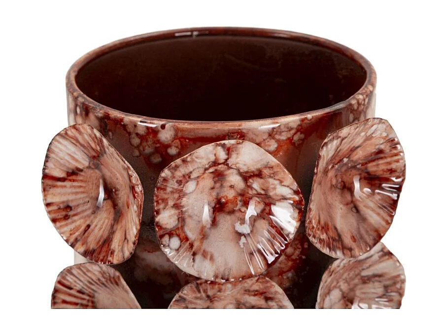 Jarrón con forma de concha de metal marrón, 12,5 x 12,5 x 24 cm