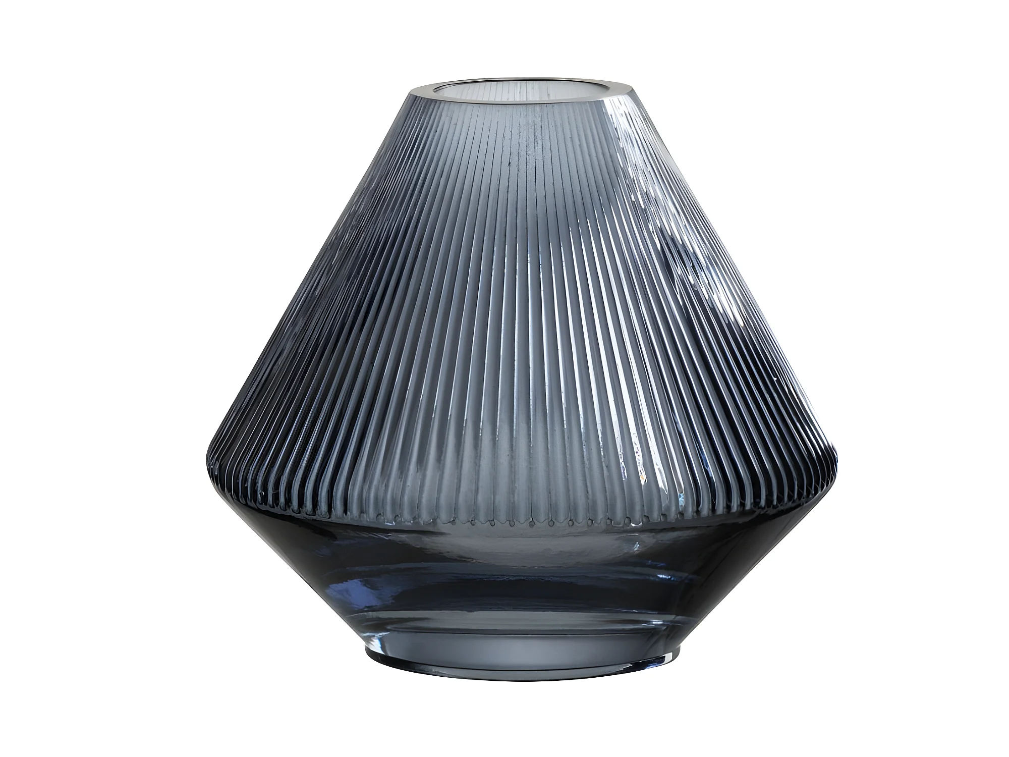 Jarrón cónico con nervaduras de vidrio azul 18x18x17 cm