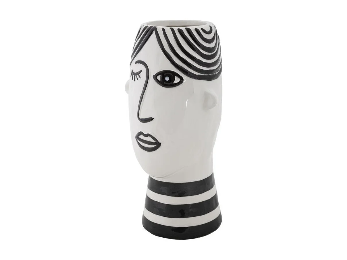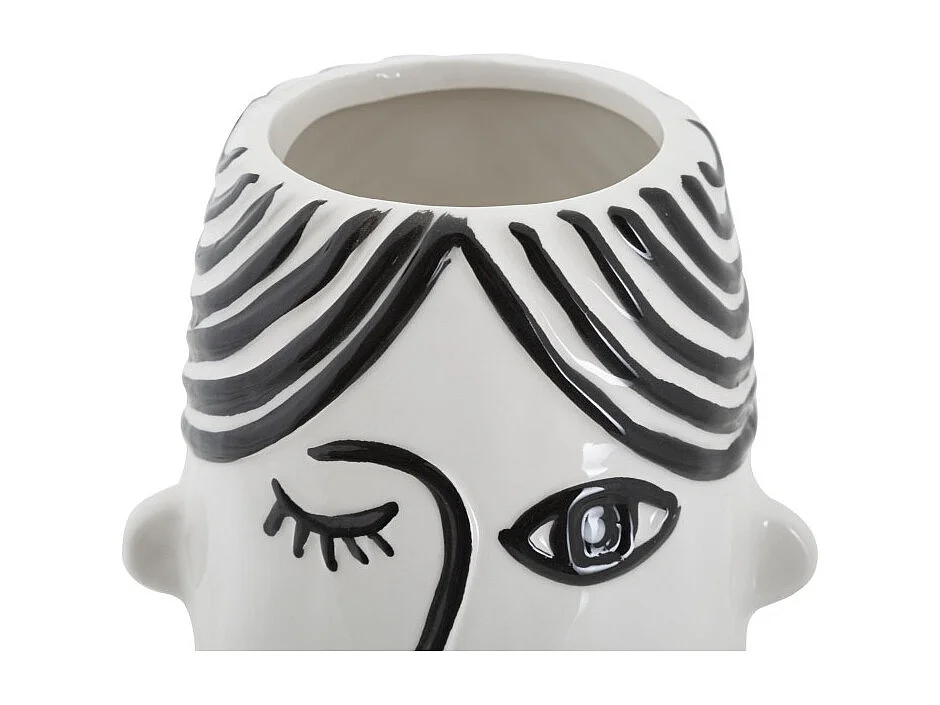 Jarrón de cara de cerámica blanca 13,2x11,8x26,3 cm