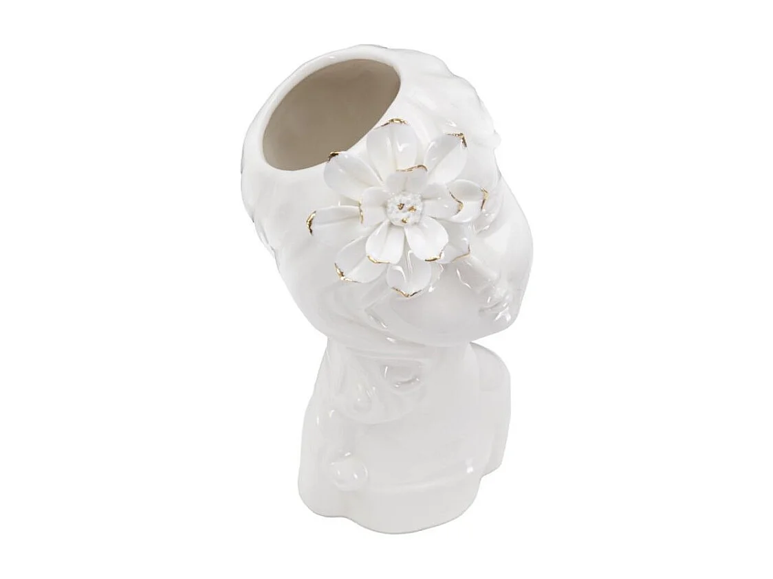 Jarrón de cerámica blanca con cara de mujer 10,5x10x24,7 cm