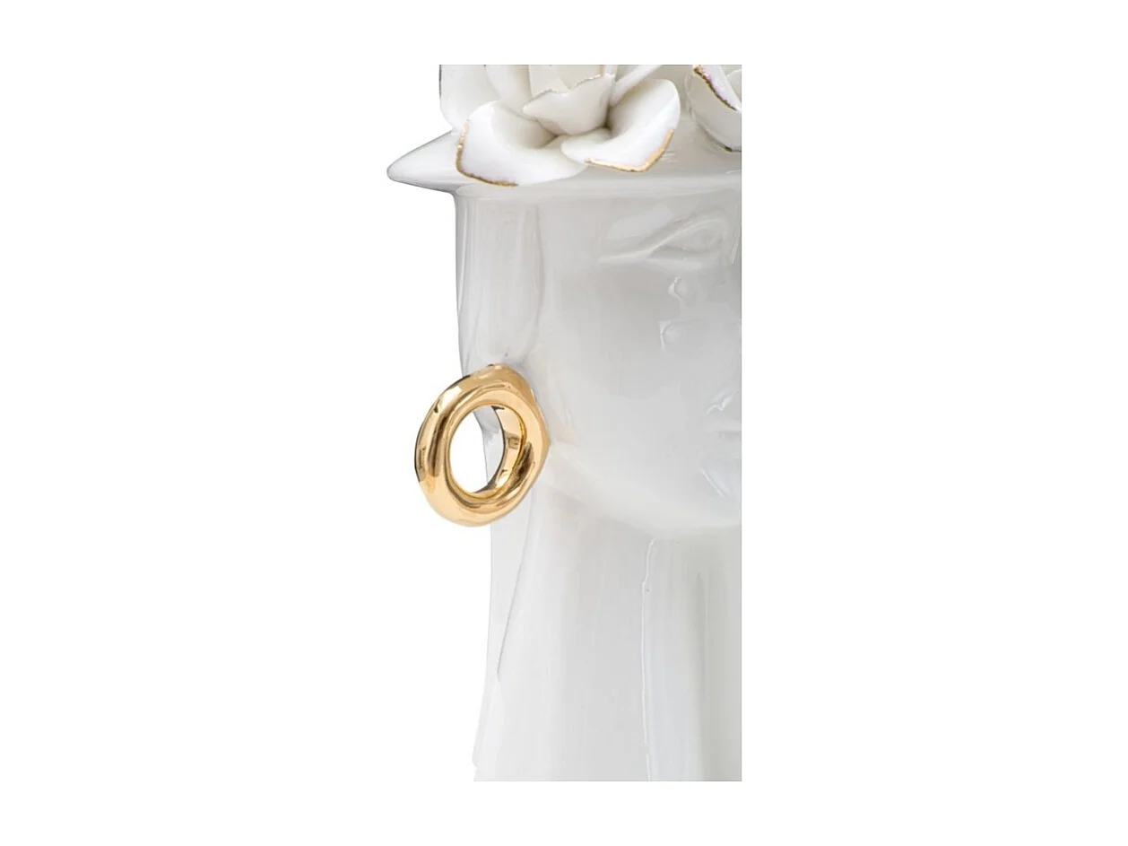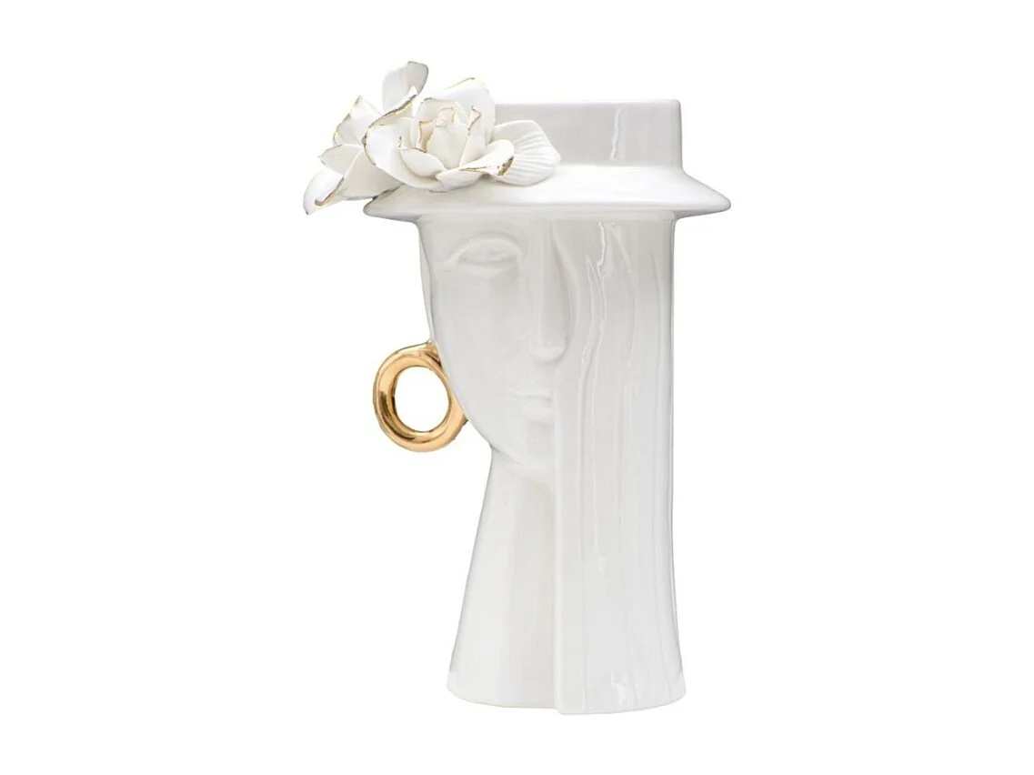 Jarrón de cerámica blanca con cara de mujer 15x13,3x23,5 cm