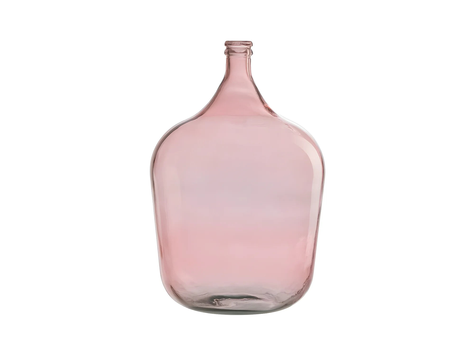 Jarrón de vidrio rosa en forma de damajuana de 37x37x55 cm