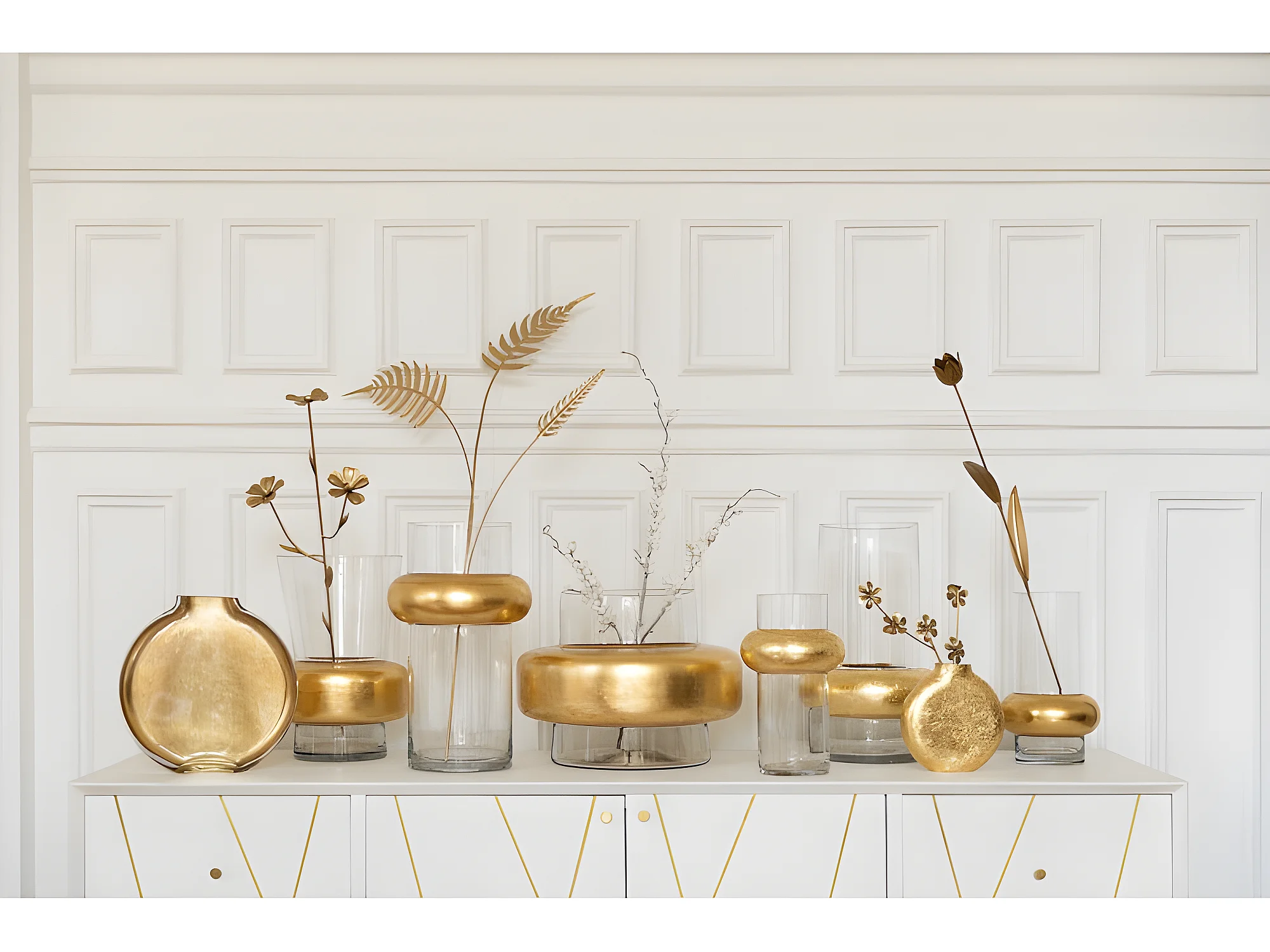 Jarrón de vidrio transparente dorado de 15x4x15cm