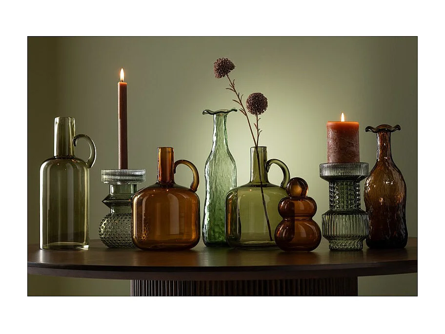 Jarrón de vidrio verde en forma de damajuana de 33x33x32 cm
