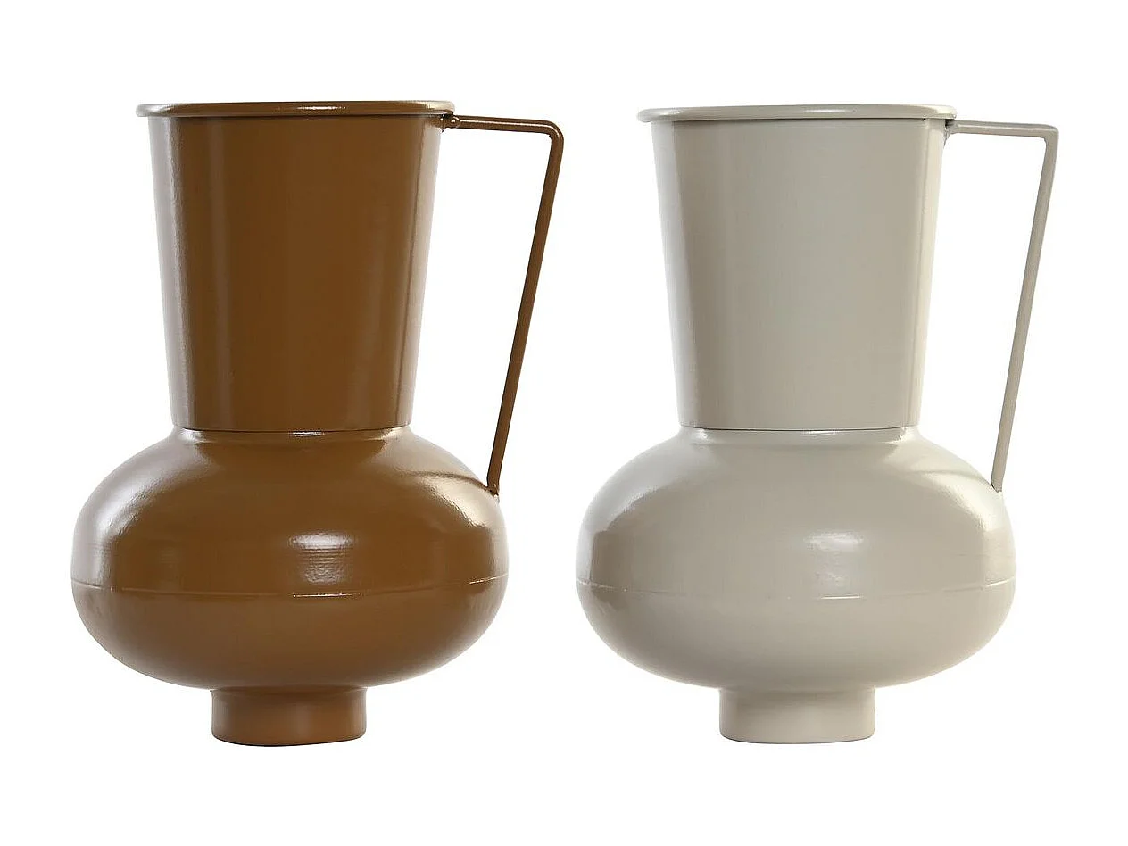 Jarrón DKD Home Decor 13 x 12.5 x 17 cm Beige Metal Naranja Mostaza (2 Unidades)