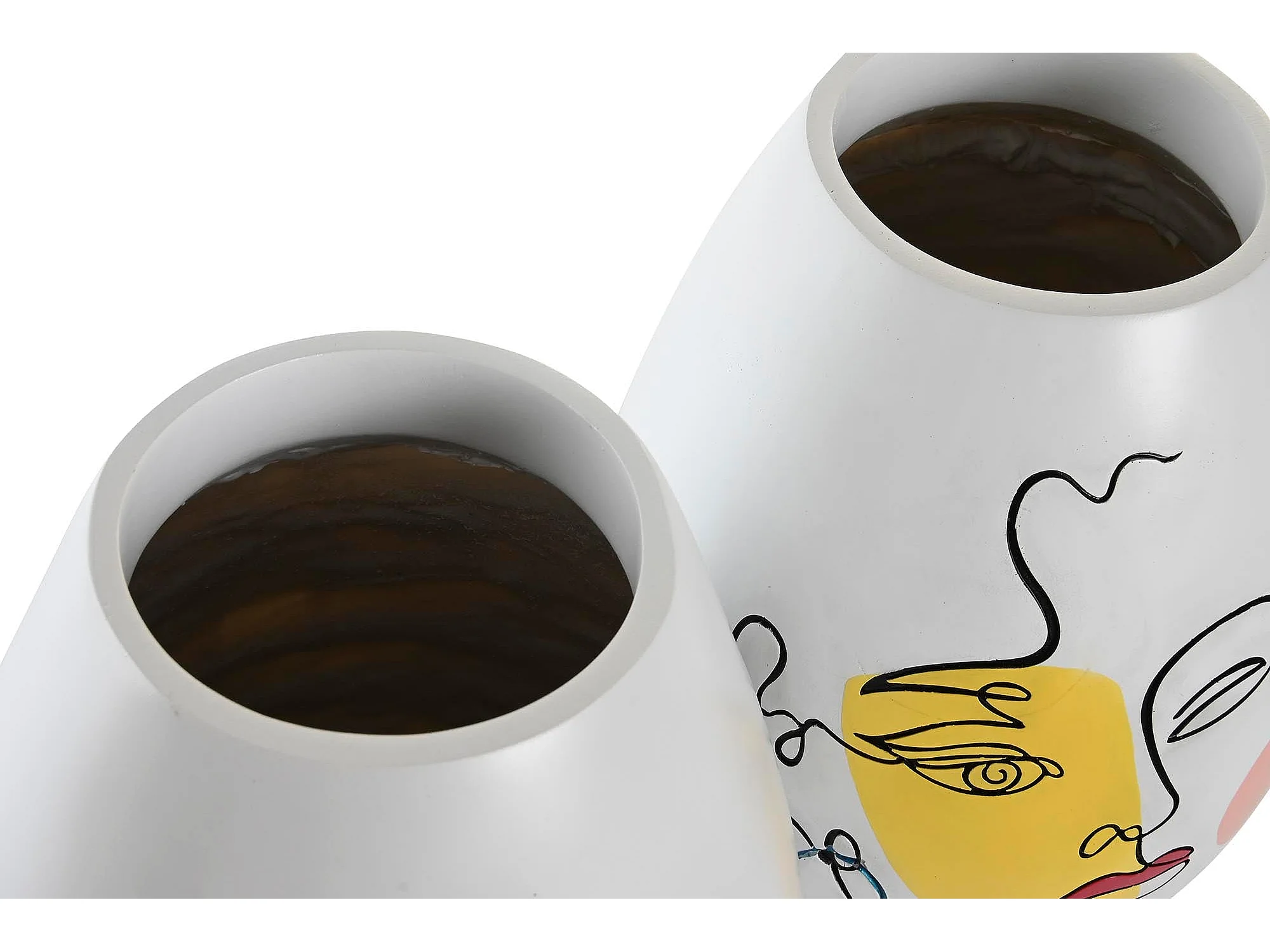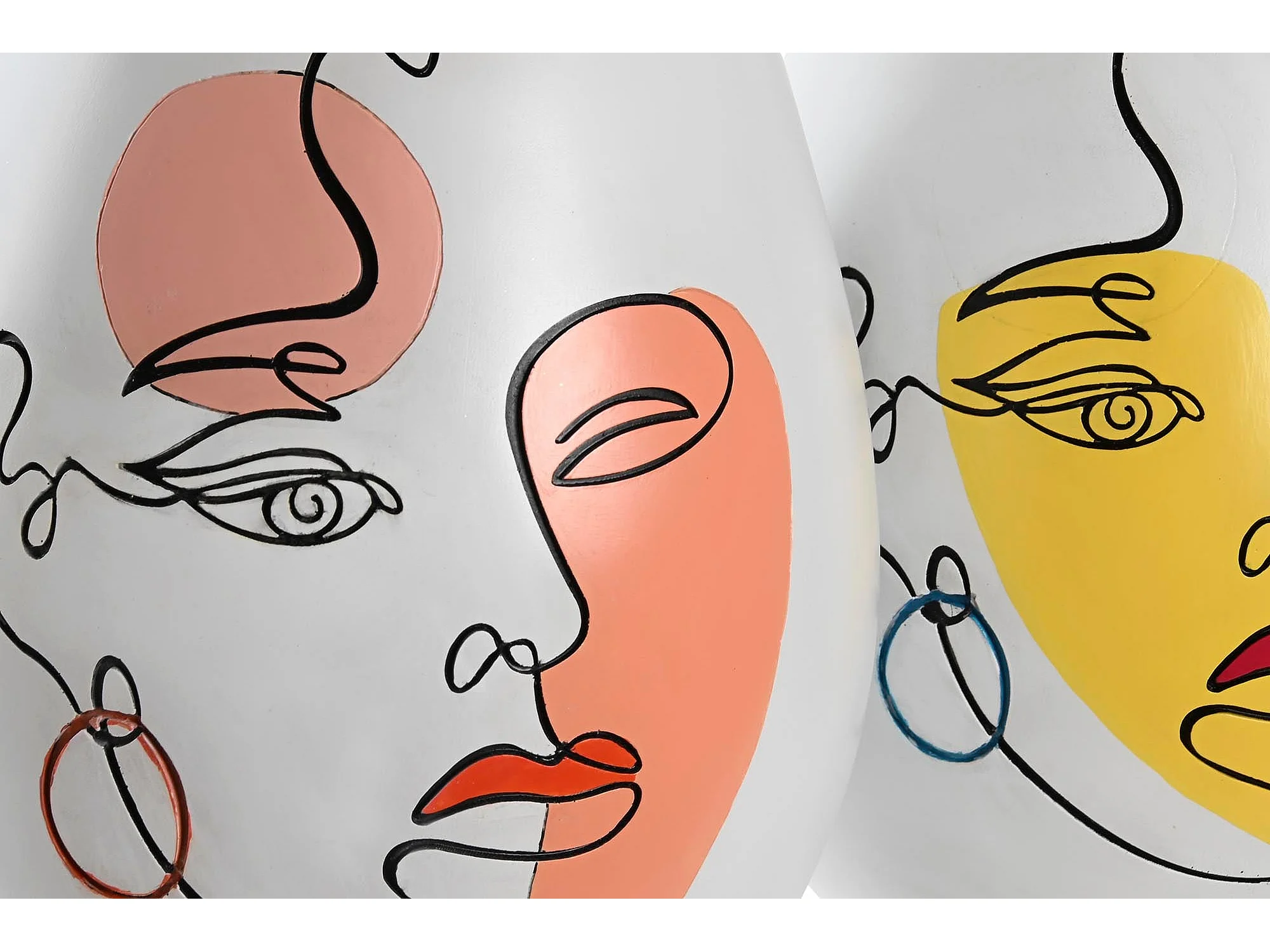 Jarrón DKD Home Decor 22,5 x 22,5 x 29 cm Cara Blanco Resina Multicolor (2 Unidades)