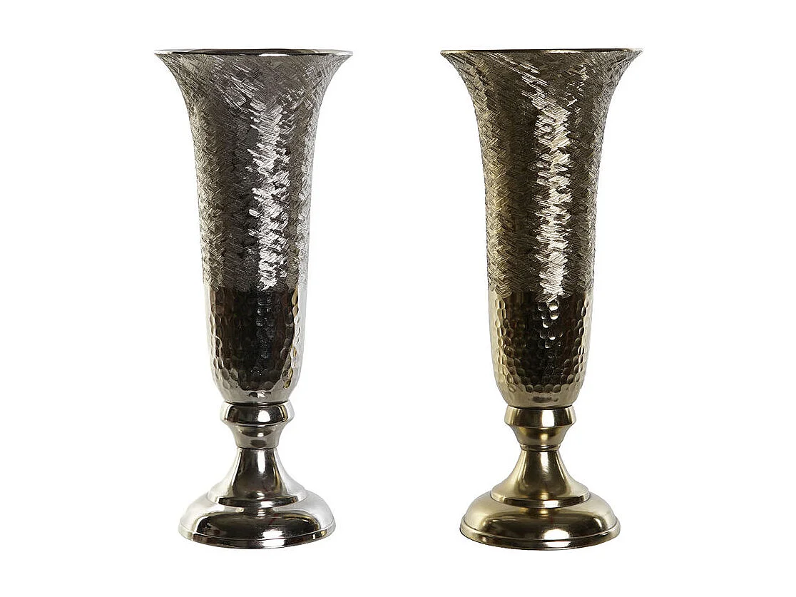 Jarrón DKD Home Decor Dorado Plateado Aluminio 13 x 13 x 33 cm (2 Unidades)