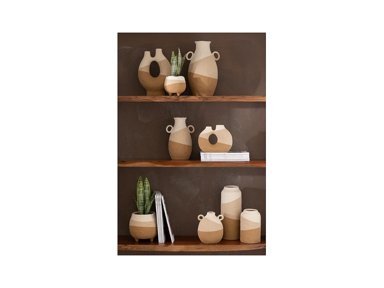 Jarrón redondo de cerámica beige 25x25x29 cm