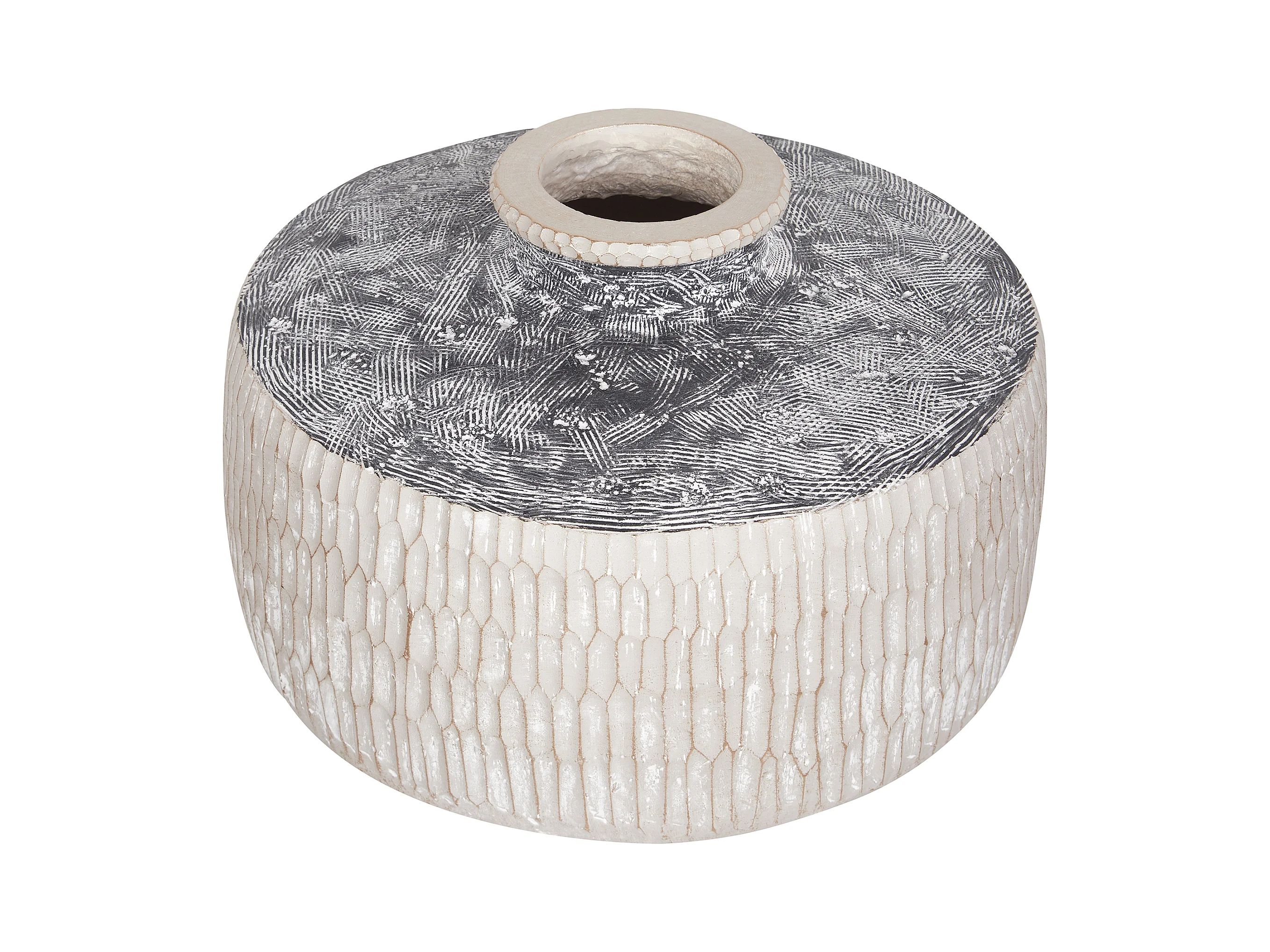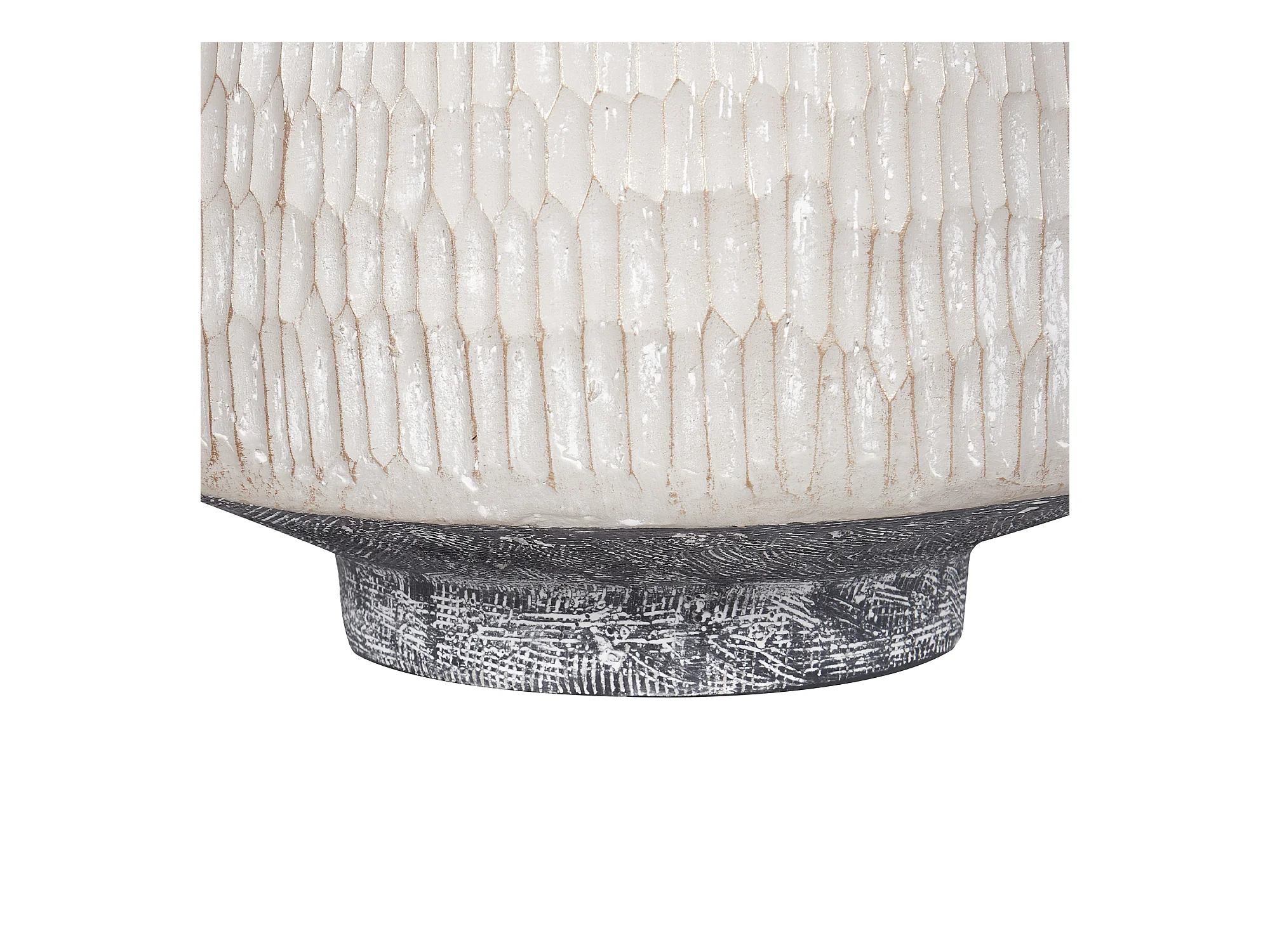 Gran jarrón de cerámica blanco y beige de 17x17x57 cm