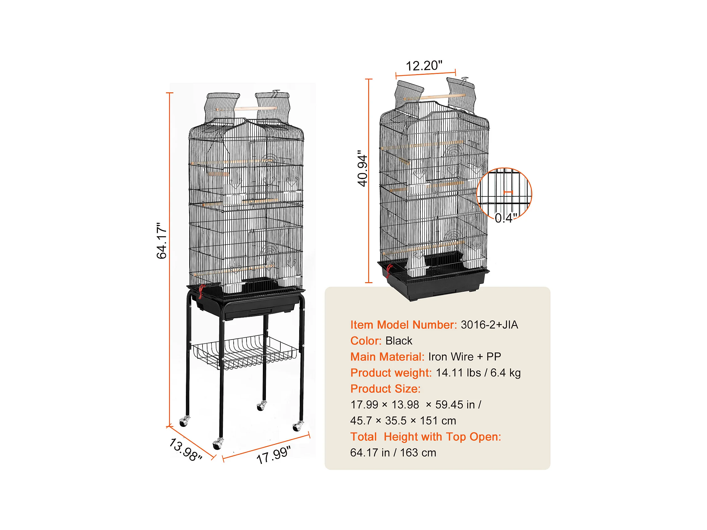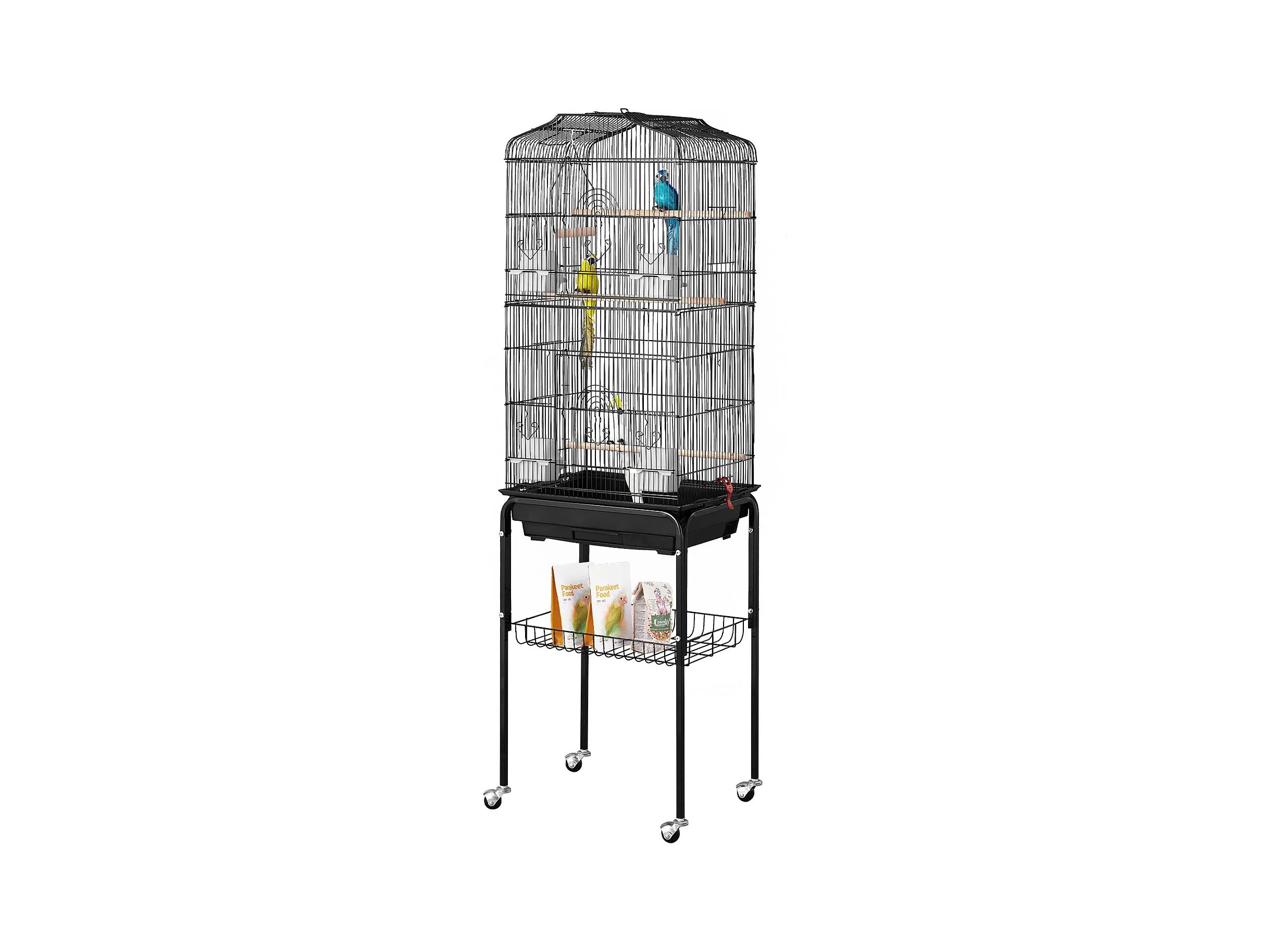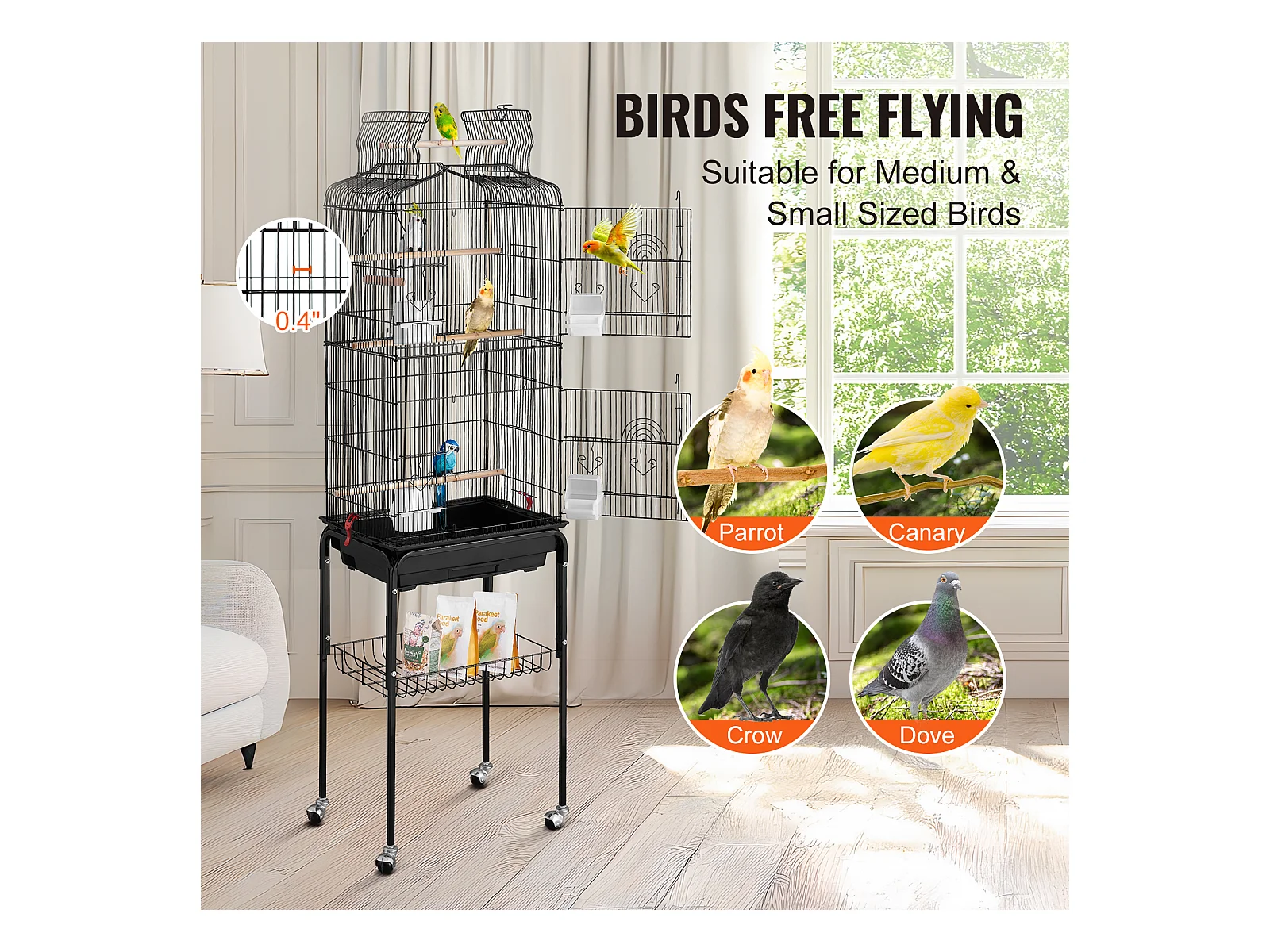 Jaula de Aves Rodante de Metal SucceBuy, 157,4 cm de Gran Tamaño, para Loros, con Comederos, Perchas, Columpios