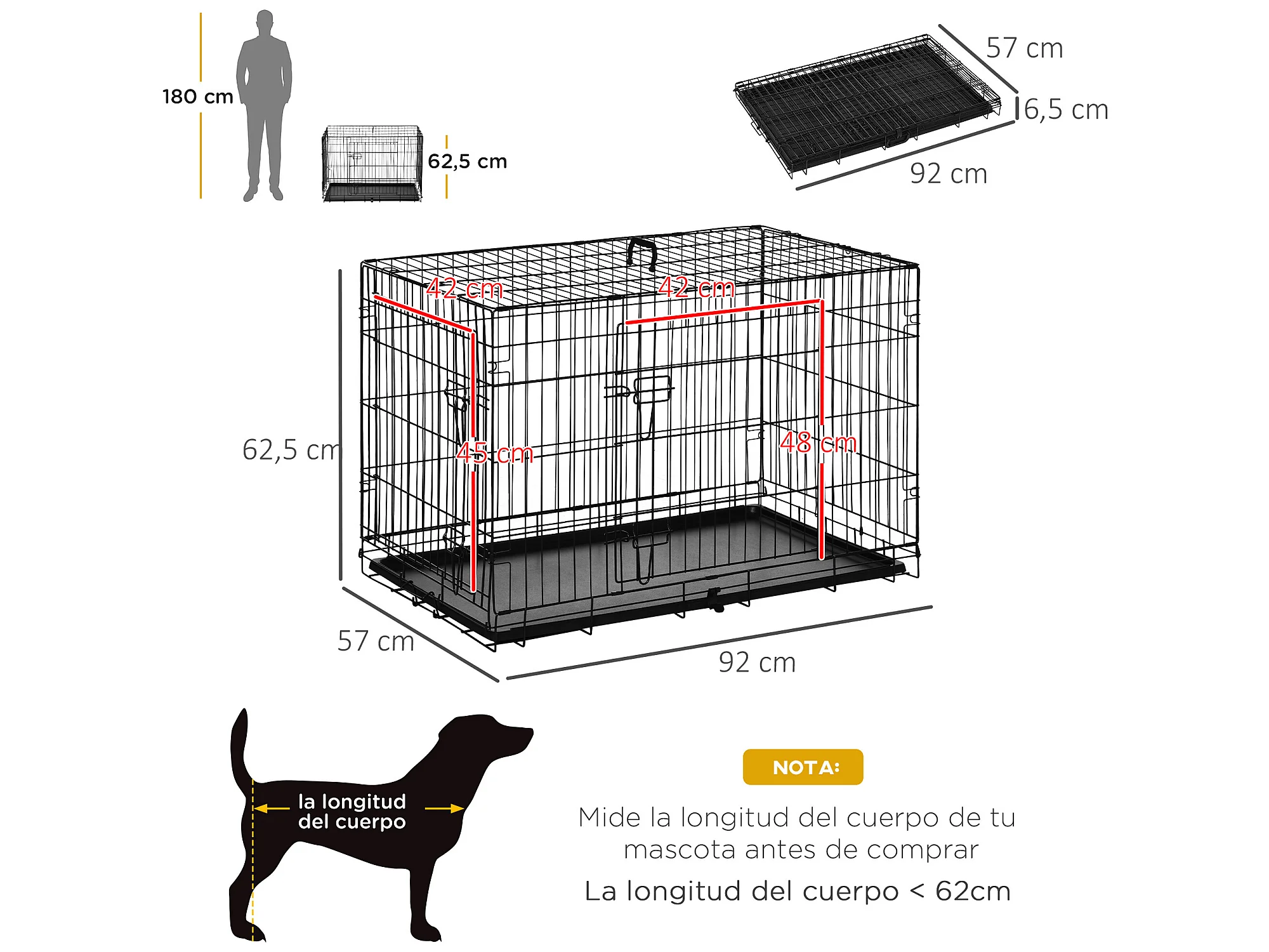 Jaula de perro negro 92x57x62.5 cm PawHut